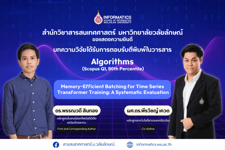 บทความวิจัยได้รับการตอบรับตีพิมพ์ในวารสาร Algorithms (Scopus Q1, 80th Percentile)