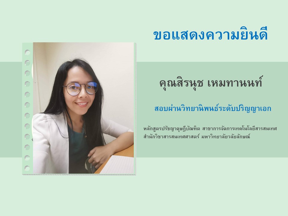 ขอแสดงความยินดีกับคุณคุณสิรนุช เหมทานนท์ นักศึกษาระดับป
