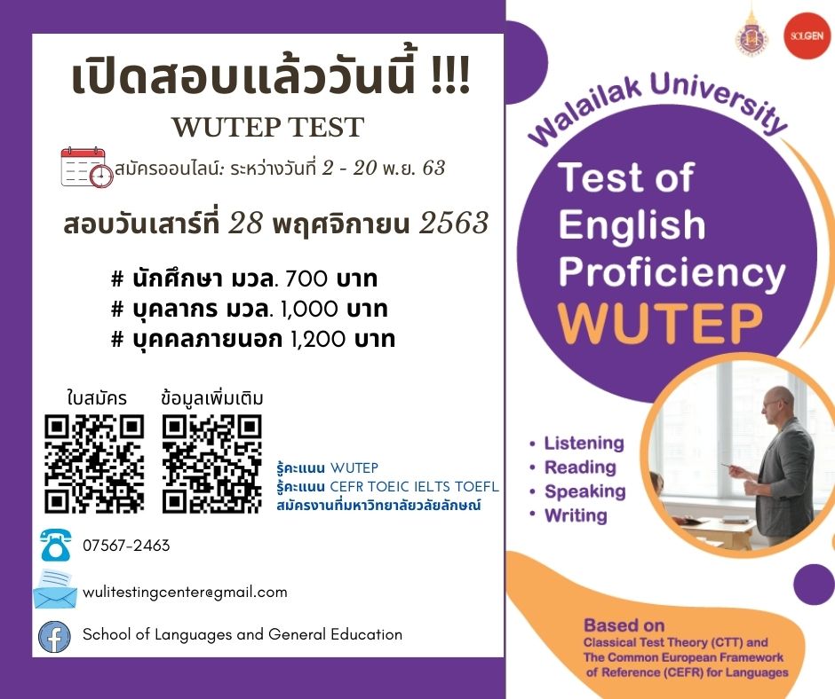 สำนักวิชาพหุภาษาและการศึกษาทั่วไปจัดสอบวัดระดับภาษาอังกฤษ WUTEP (Walailak University Test of English Proficiency)
