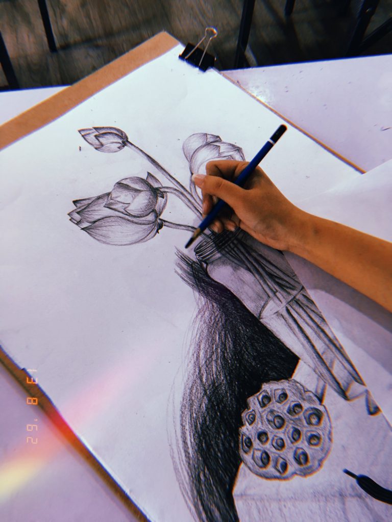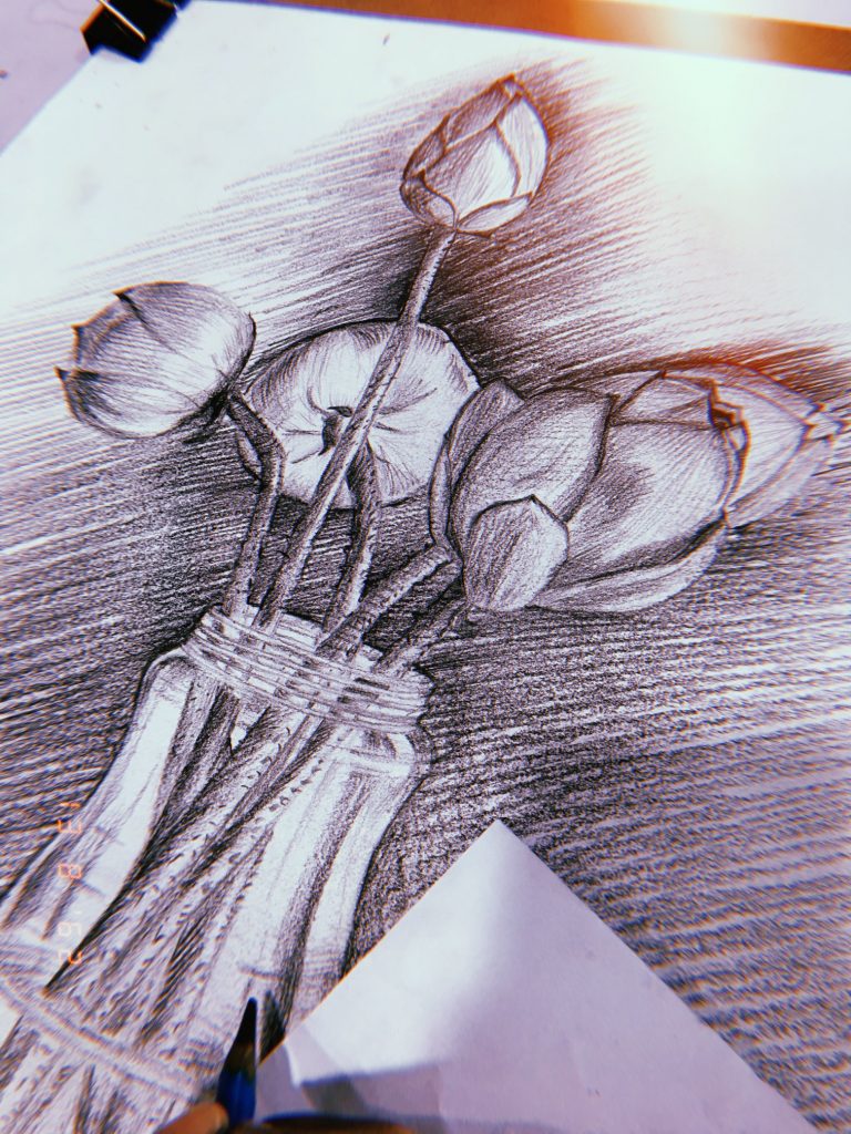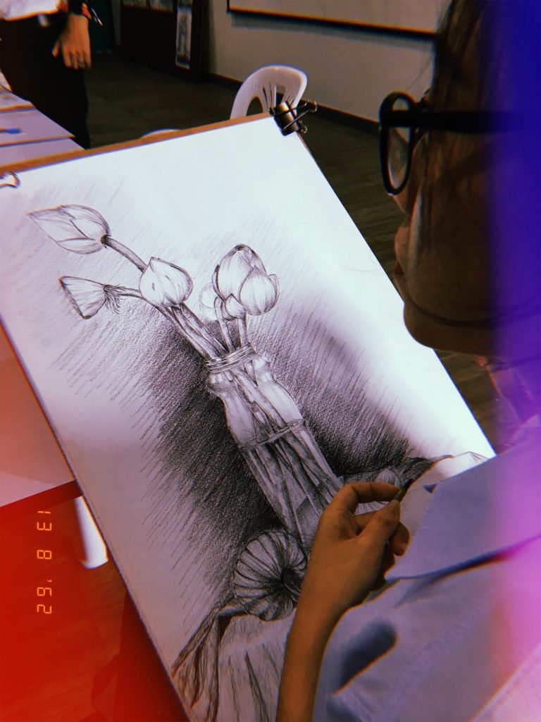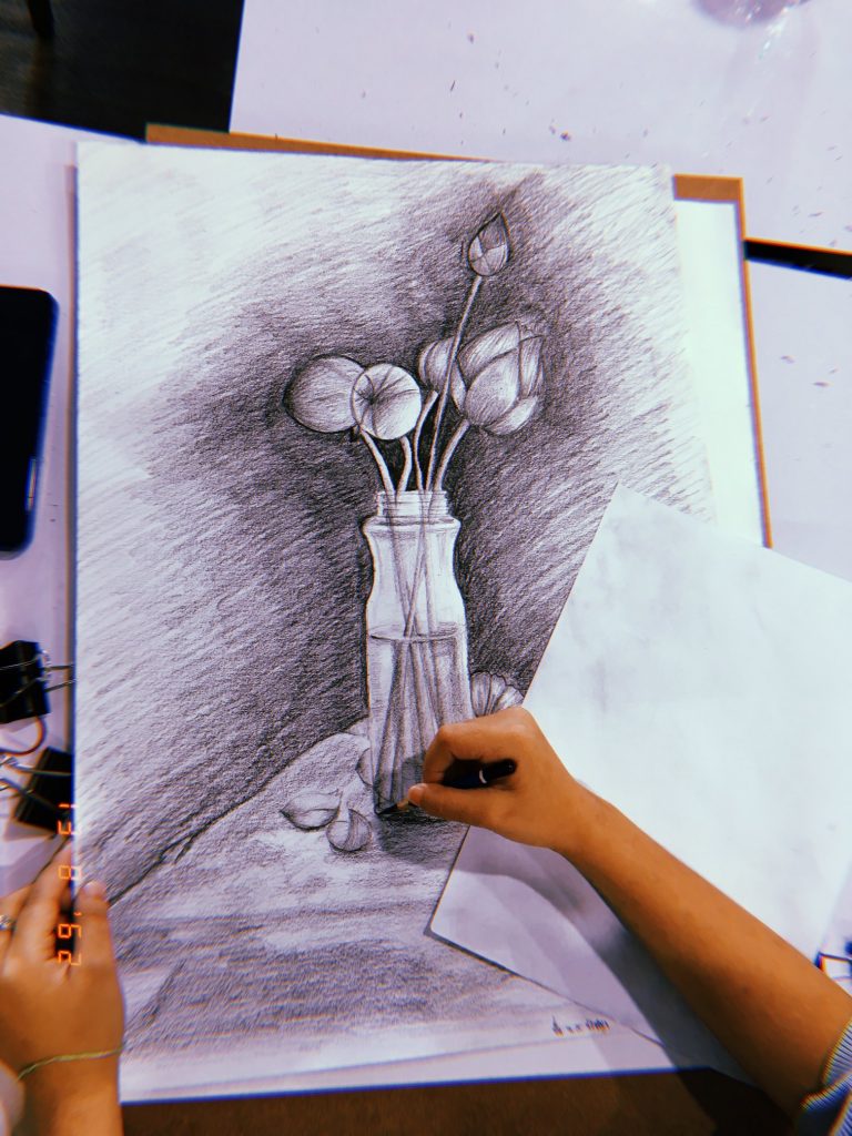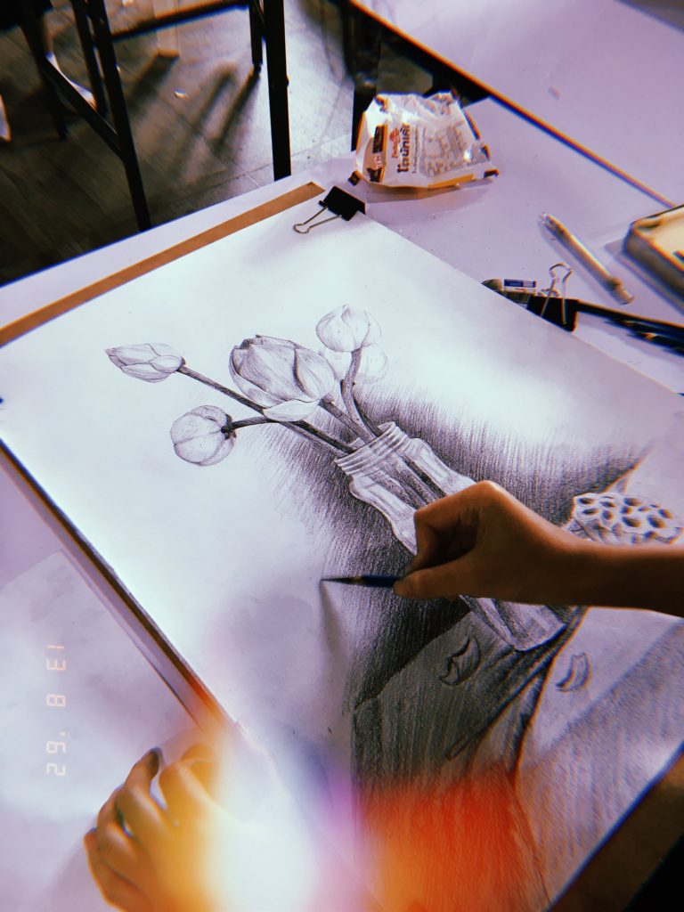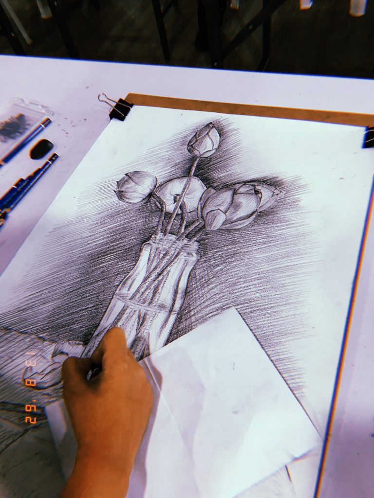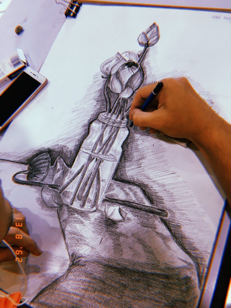 รายวิชา MAG62-102 การวาดเส้น | ดอกไม้. บรรยากาศการเรียนการสอนในรายวิชาวาดเส้นของนักศึกษาหลักสูตรเทคโนโลยีมัลติมีเดียแอนิเมชันและเกม มหาวิทยาลัยวลัยลักษณ์ ภาคการศึกษาที่ 1 ปีการศึกษา 2562