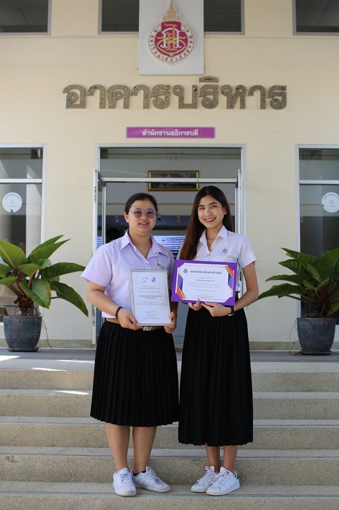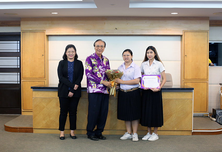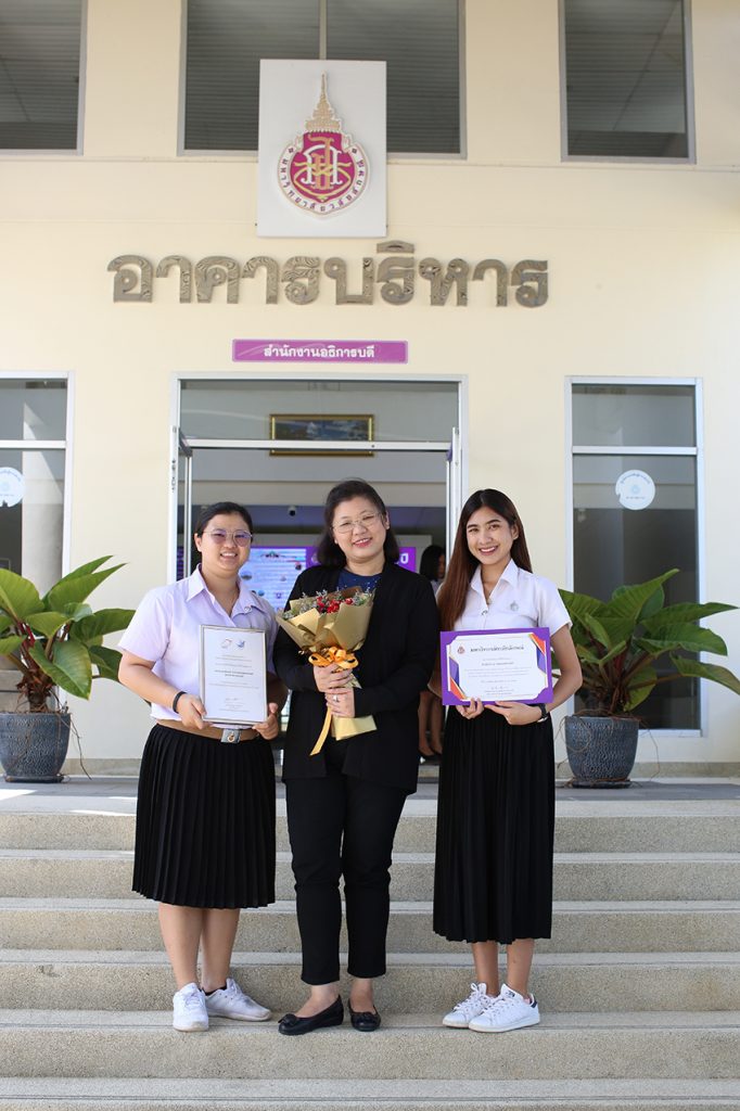 อธิการบดีมหาวิทยาลัยวลัยลักษณ์ มอบช่อดอกไม้แสดงความยินดี รางวัลที่ 3 ผลงานประกวด “จับจ้องส่องจริยธรรมสื่อ” และรางวัลชมเชยโครงการประกวด “การผลิตสื่อโฆษณาที่ปลอดภัยและสร้างสรรค์”