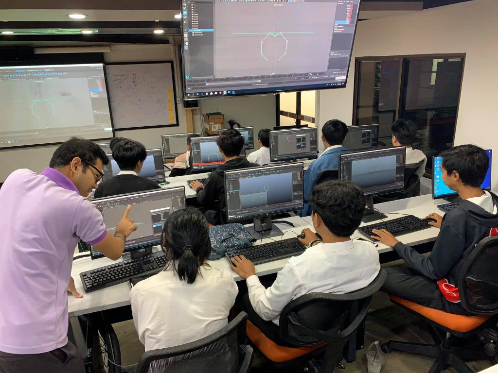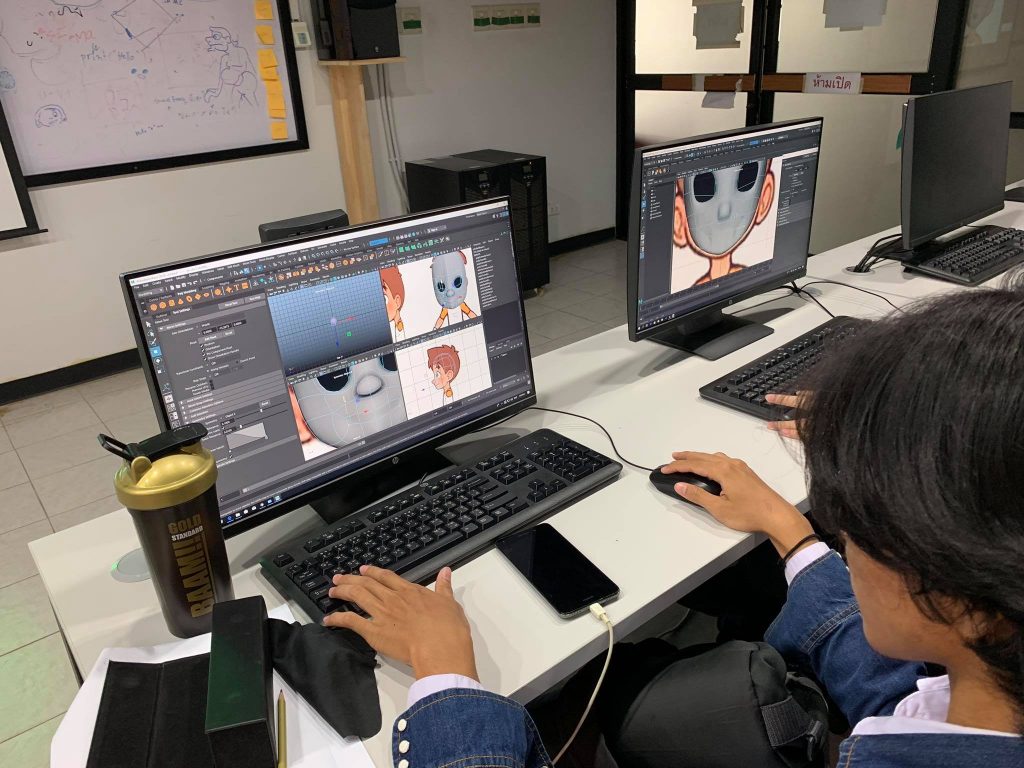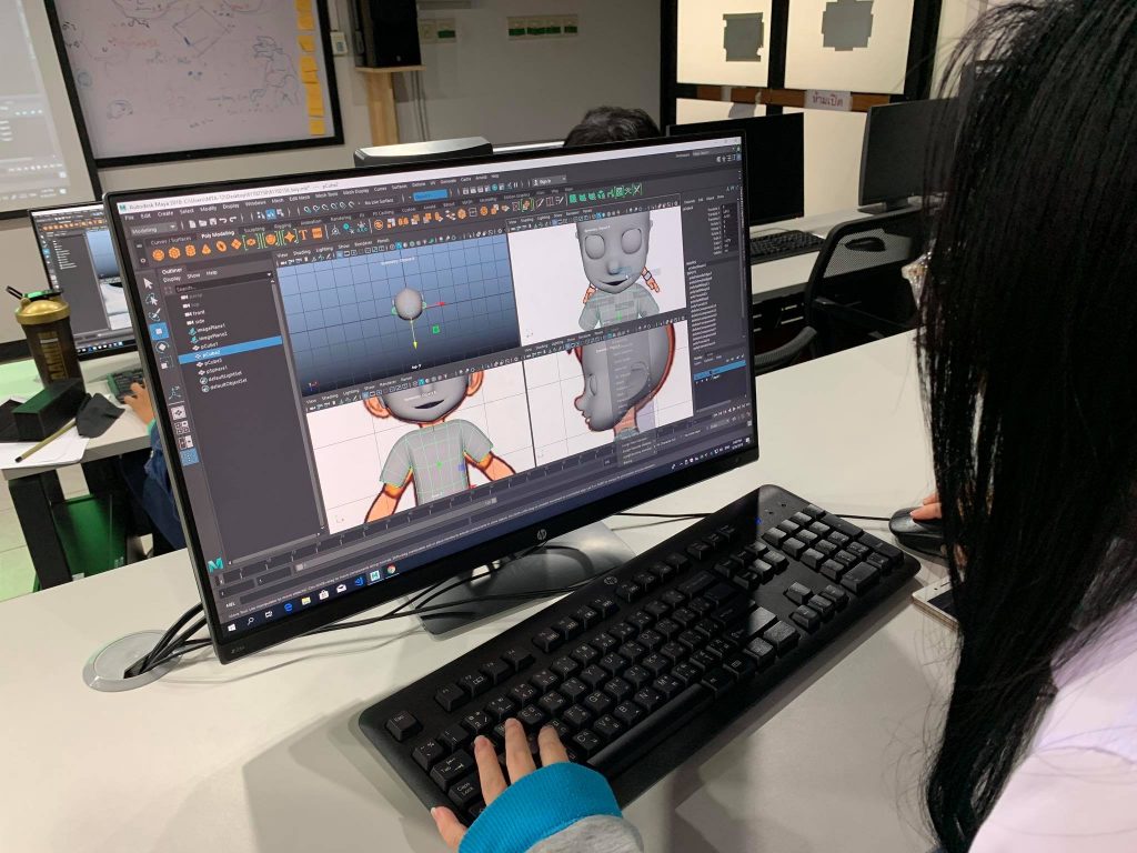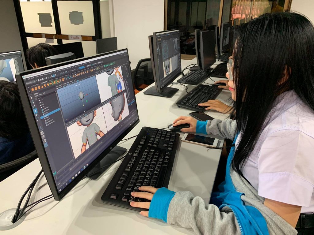ชั้นปีที่ 2 ปั้นโมเดล 3 มิติ ริกกระดูก(riging) แอนิเมทตัวละคร เรียนรู้โมชันแคปเจอร์(Motion capture) สร้างเกมคอมพิวเตอร์
