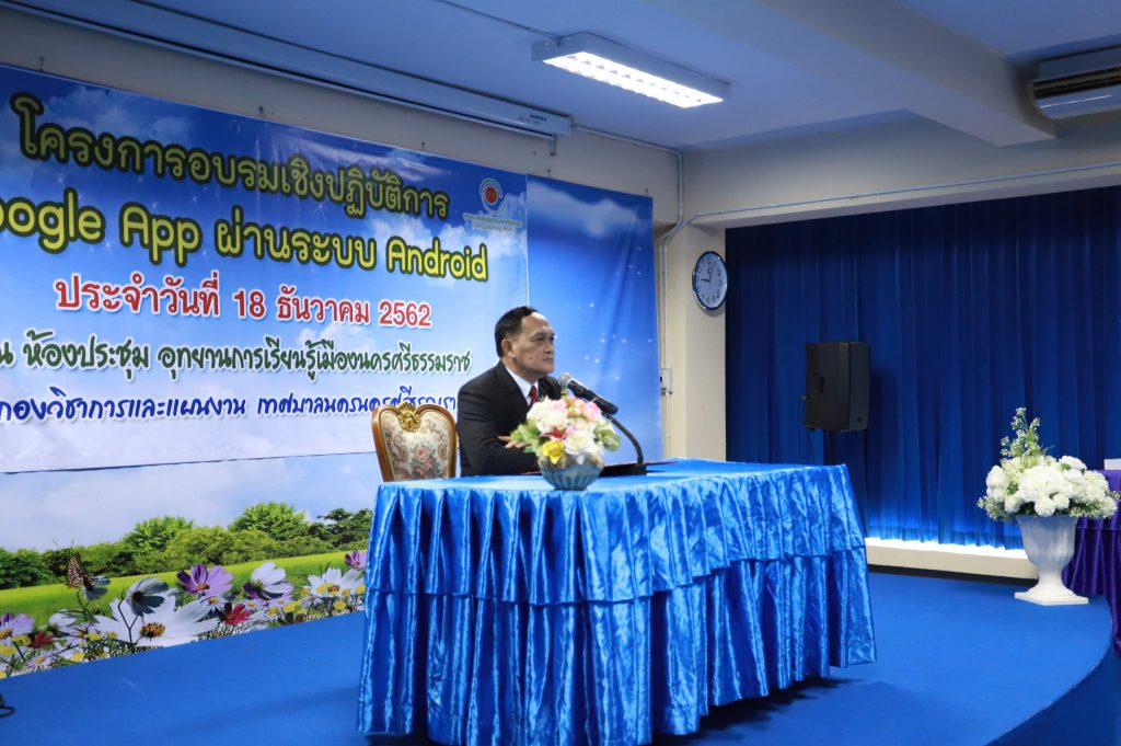 เมื่อวันพุธ ทื่ 18 ธันวาคม 2562 ที่ผ่านมา อาจารย์ ดร.ยุทธนา เจริญรื่น อาจารย์ ดร.สัจจารีย์ ศิริชัย เเละนายวีรยุทธ์ บุญพิศ หลักสูตรดิจิทัลอคอเทนต์เเละสื่อ ได้รับเชิญเป็นวิทยากร บรรยายเเละอบรมเชิงปฏิบัติการ ในหัวข้อ Google App จากเทศบาลนครศรีธรรมราช โดยอุทยานการเรียนรู้เมืองนครศรีธรรมราช มีวัตถุประสงค์ในการจัดงานเพื่อให้ผู้เข้าร่วมโครงการสามารถนำความรู้ที่ได้รับมาพัฒนางานของตนเอง เเละรู้จักการนำเว็บไซต์ที่มีประโยชน์ไปใช้เพื่อการศึกษาหรือการเรียนการสอนในปัจจุบัน ในการนี้ได้รับเกียยรติจากคุณครรชิต มนูญผล รองนายกเทศมนตรี เป็นประธานในการเปิดโครงการ