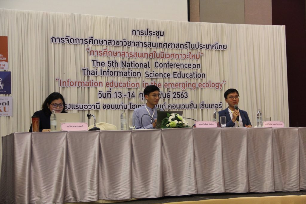 ครั้งที่ 5 Tise2020 ในหัวข้อการประชุม “การศึกษาสารสนเทศในนิเวศภาวะอุบัติใหม่” โดยผู้ช่วยศาสตราจารย์ ดิชิตชัย เมตตาริกานนท์ ได้นำเสนองาน/ผลงานการวิจัยที่เกี่ยวข้องกับสาขาสารสนเทศในนิเวศภาวะอุบัติใหม่ ในหัวข้อ หลักสูตรสารสนเทศศาสตร์พันธุ์ใหม่การปรับตัวในยุค Digital Disruption ซึ่งได้นำเสนอหลักสูตรพันธ์ใหม่ หลักสูตรดิจิทัลคอนเทนต์เเละสื่อ เกี่ยวกับบทเรียนและกรณีศึกษาหลักสูตร 4 ปี