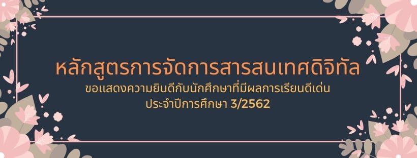ชื่นชม!! ขอเเสดงความยินดีกับนักศึกษาหลักสูตรการจัดการสารสนเทศดิจิทัล ที่มีผลการเรียนดีเด่น ประจำภาคการศึกษาที่ 3/2562