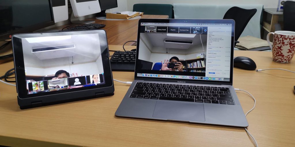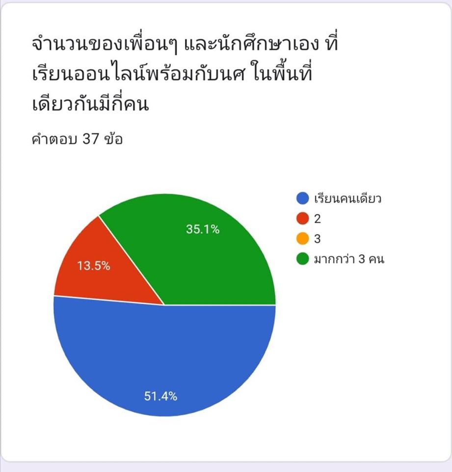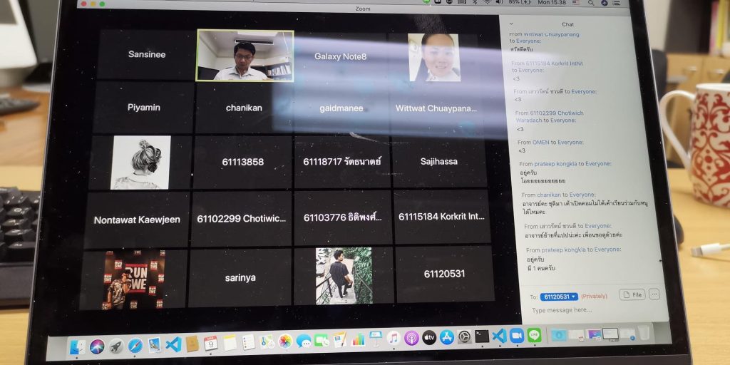 – นักศึกษาทุกคนมีคอมพิวเตอร์ส่วนตัว แต่บางคนใช้ PC และไม่มีกล้อง หรือไมโครโฟน จึงสื่อสารผ่าน chat ของโปรแกรม Zoom