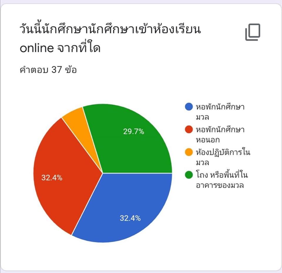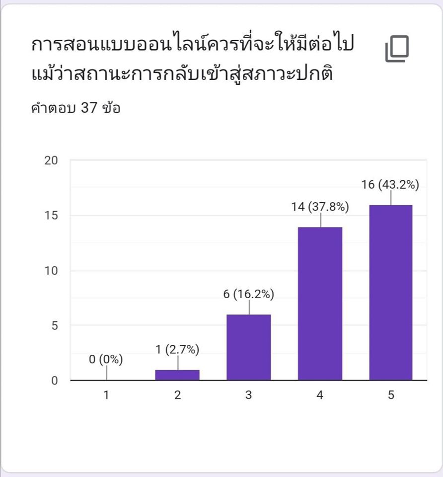 – นักศึกษา 92% มีความพึงพอใจการสอนแบบออนไลน์ และ 80% ยอมรับได้หากมีการสอนแบบออนไลน์ต่อไป แม้ว่าสถานะการณ์จะเข้าสู่สภาวะปกติ