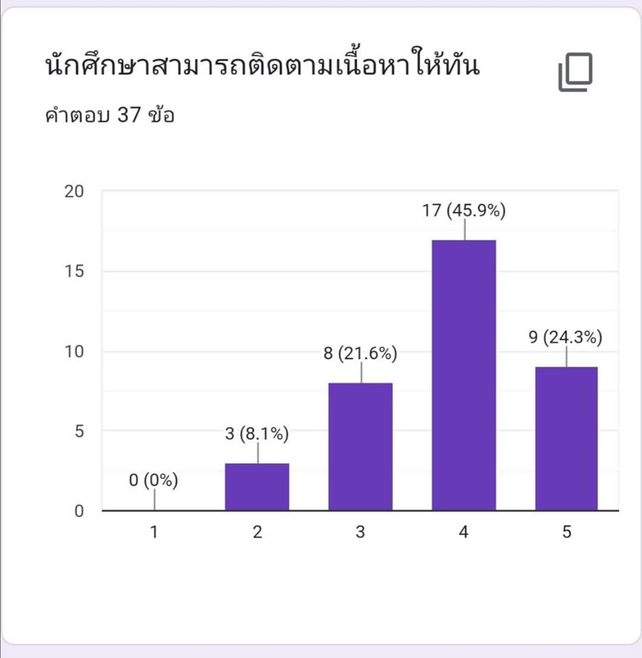 – นักศึกษา 70% สามารถติดตามเนื้อหาในห้องได้ทัน และอีก 8% ตามไม่ทันในห้องเรียน