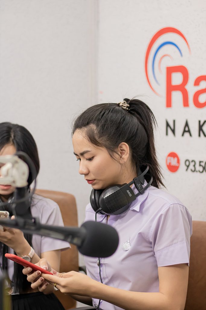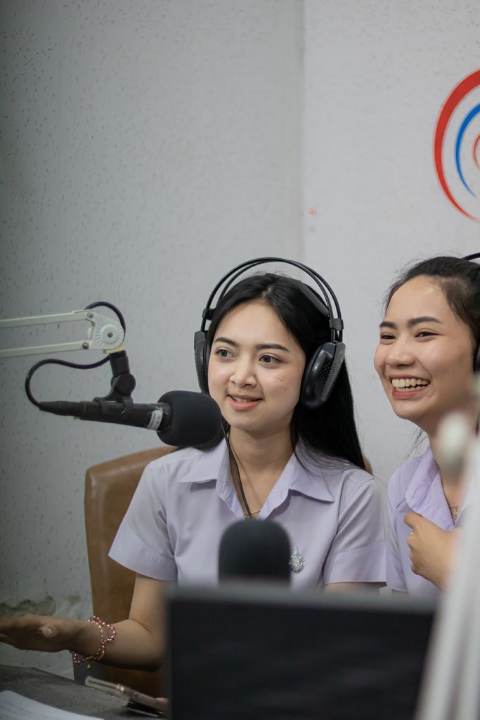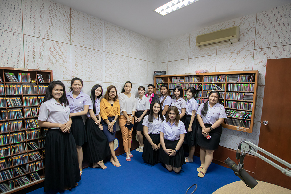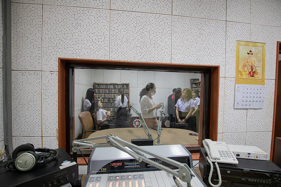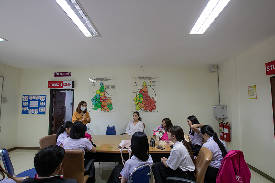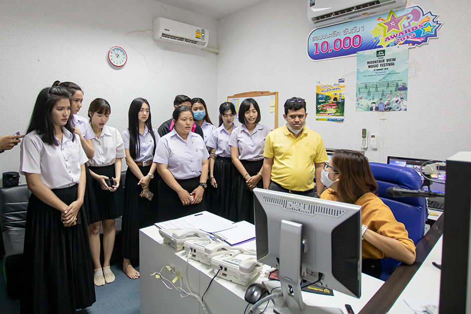 รายวิชา การประกาศและการดำเนินรายการทางวิทยุกระจายเสียงและวิทยุโทรทัศน์ หลักสูตรนิเทศศาสตร์ จัดกิจกรรมการเรียนการสอนนอกห้องเรียน เรียนรู้เทคนิคการจัดรายการสดและร่วมแลกเปลี่ยนประสบการณ์กับนักวิชาชีพ