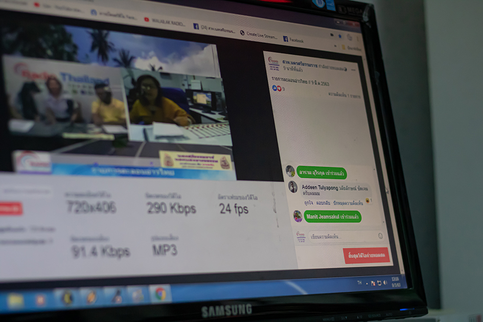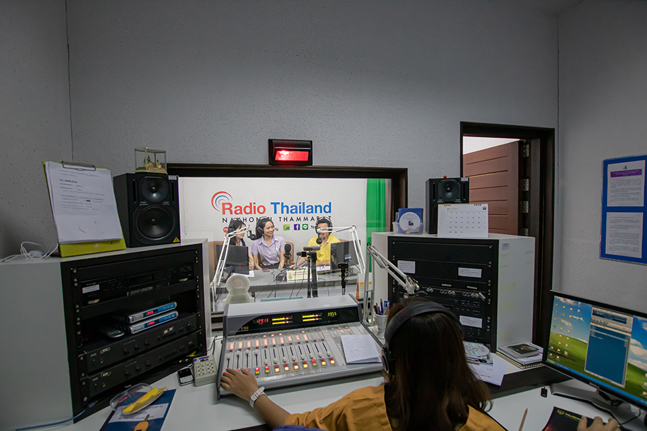 ช่วงบ่าย คุณสมัญญาอนุญาตให้นักศึกษาเข้าไปดูวิธีการจัดและการดำเนินรายการสด รายการ “ตะลอนอ่าวไทย” ออกอากาศเวลา 13.00-14.00 น. บรรยากาศภายในห้องจัดรายการสดของทางสถานีวิทยุเป็นไปอย่างคึกคักและอบอุ่น เนื่องจากนักศึกษาได้มีส่วนร่วมกับการจัดรายการทั้งงานเบื้องหน้าและงานเบื้องหลัง ช่วยรับสายจากทางบ้าน (phone in) ซึ่งโทรมาพูดคุยและขอเพลงอย่างต่อเนื่อง ช่วยจดลิสต์รายการเพลงและชื่อผู้ขอเพลง และร่วมพูดคุยในรายการอีกด้วย