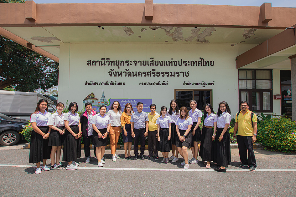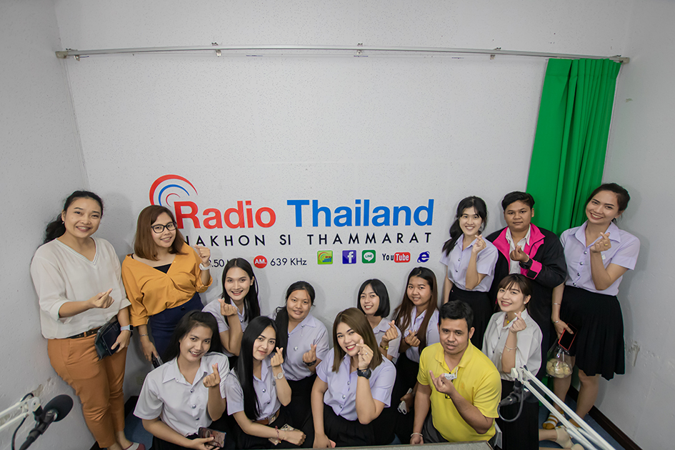 นครศรีธรรมราช – เมื่อวันที่ 9 มี.ค. ที่ผ่านมา ผศ.ดร.ฟารีดา เจะเอาะ นำนักศึกษานิเทศศาสตร์ ชั้นปี 3 จำนวน 13 คน ศึกษาดูงานเทคนิคการจัดและการดำเนินรายการทางวิทยุกระจายเสียง ณ สถานีวิทยุกระจายเสียงแห่งประเทศไทย จังหวัดนครศรีธรรมราช (สวท.นครศรีธรรมราช)