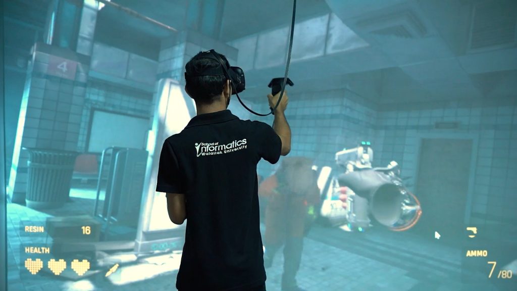 ถึงมหาลัยจะหยุดการเรียนการสอนจาก covid19 แต่ทางห้องปฏิบัติการมัลติมีเดียก็ไม่ได้หยุดเตรียมความพร้อมสำหรับการเรียนการสอนแต่อย่างใด หลักสูตรเทคโนโลยีมัลติมีเดียได้จัดเตรียมความพร้อมสำหรับห้องปฏิบัติการ Virtual Reality โดยได้จัดเตรียม cave ให้พร้อมใช้งาน จัดเตรียม Oculus Rift,HTC Vive ,นอกจากนี้ยังอัพเดท เกม half life alyx สำหรับสร้างแรงบันดาลใจให้นักศึกษาในหลักสูตรได้ใช้เป็นแนวทางในการเรียน