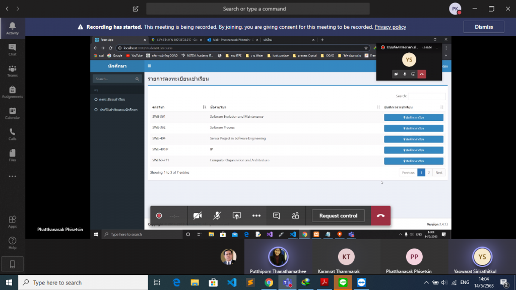 นำเสนอโครงงานนักศึกษาชั้นปีที่ 4 หลักสูตรวิศวกรรมซอฟต์แวร์ ม.วลัยลักษณ์ โดยใช้ Microsoft Team Part#3