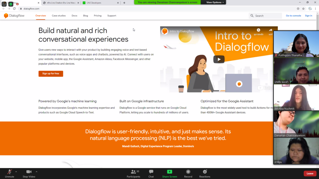 โดยทางหลักสูตรวิศวกรรมซอฟตแวร์ได้สอนให้นักศึกษาน้องใหม่63 ได้สร้าง Line Chat Bot โดยใช้ Google Dialogflow ใช้เทคนิคด้าน machine learning และ natural language processing (NLP) ทำให้เข้าใจการสนทนาของมนุษย์ และเชื่อมต่อกับ Line developers ซึ่งทำให้นักศึกษาน้องใหม่ได้ลองใช้งานเครื่องมือของ Line ซึ่งโดยทั่วไปแล้วน้องนักศึกษามักนิยมใช้ Line สื่อสารกับผู้อื่นเท่านั้น ไม่เคยมีประสบการณ์ในการใช้เครื่องมือของ Line เพื่อให้สามารถสนทนากับ Bot ที่สร้างขึ้นผ่าน Line ได้