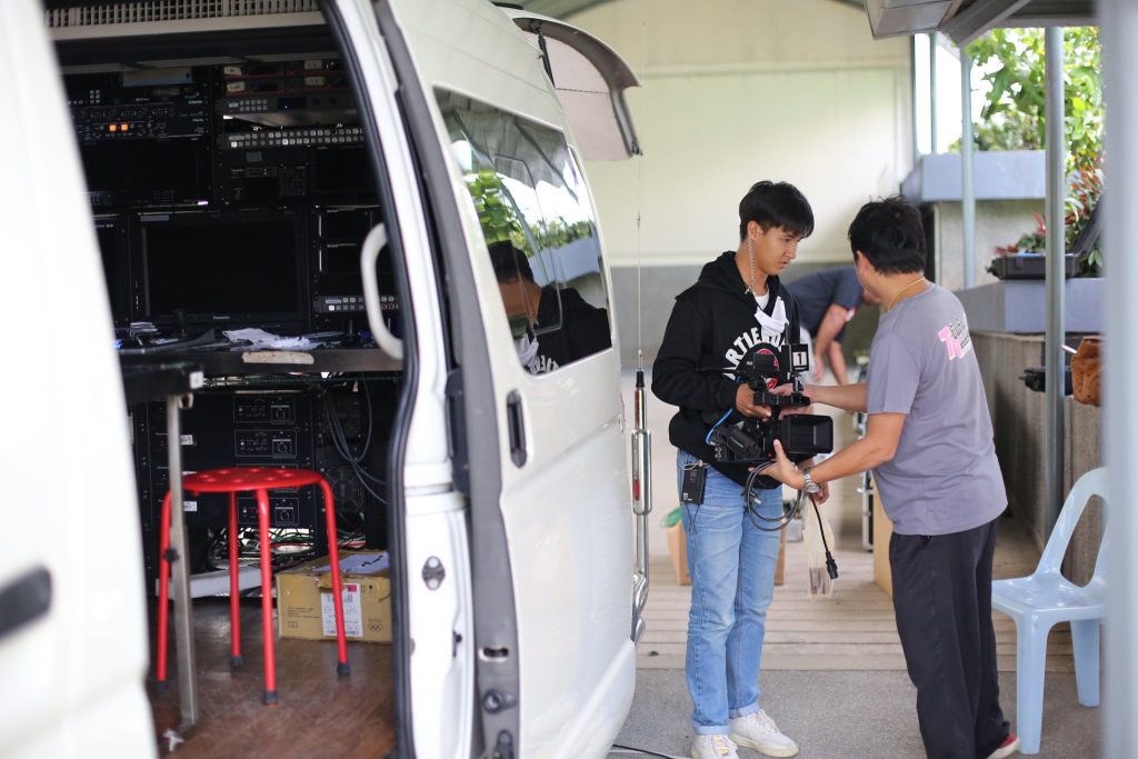 ในครั้งนี้หลักสูตรนิเทศศาสตร์ได้เปิดโอกาสให้นักศึกษาที่มีความสนใจ เข้ามาฝึกภาคปฏิบัติ โดยร่วมทำงานเป็นส่วนหนึ่งของทีมงานถ่ายทอดสด นักศึกษาได้ลงมือปฏิบัติงานจริงในทุกๆขั้นตอน เป็นการสะสมประสบการณ์ และเรียนรู้การทำงานจากสถานการณ์จริงอย่างใกล้ชิด