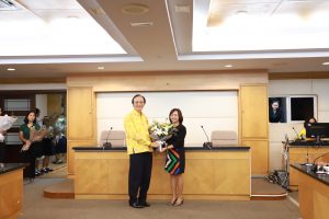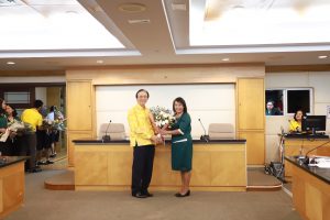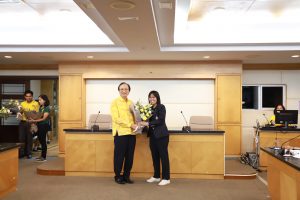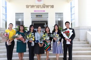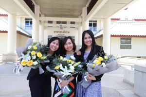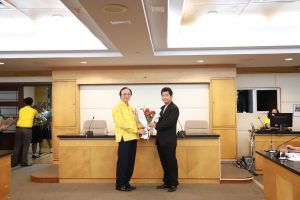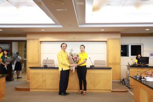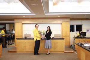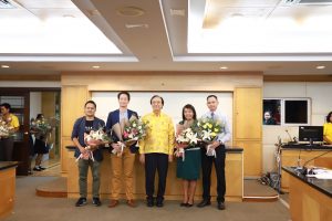 คณาจารย์สำนักวิชาสารสนเทศศาสตร์ เข้ารับมอบช่อดอกไม้จากท่านอธิการบดี ม.วลัยลักษณ์ เพื่อแสดงความยินดีที่ได้รับประกาศนียบัตร UKPSF