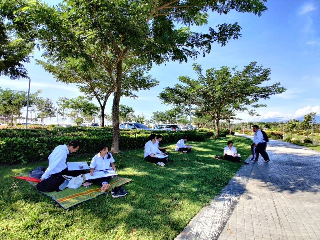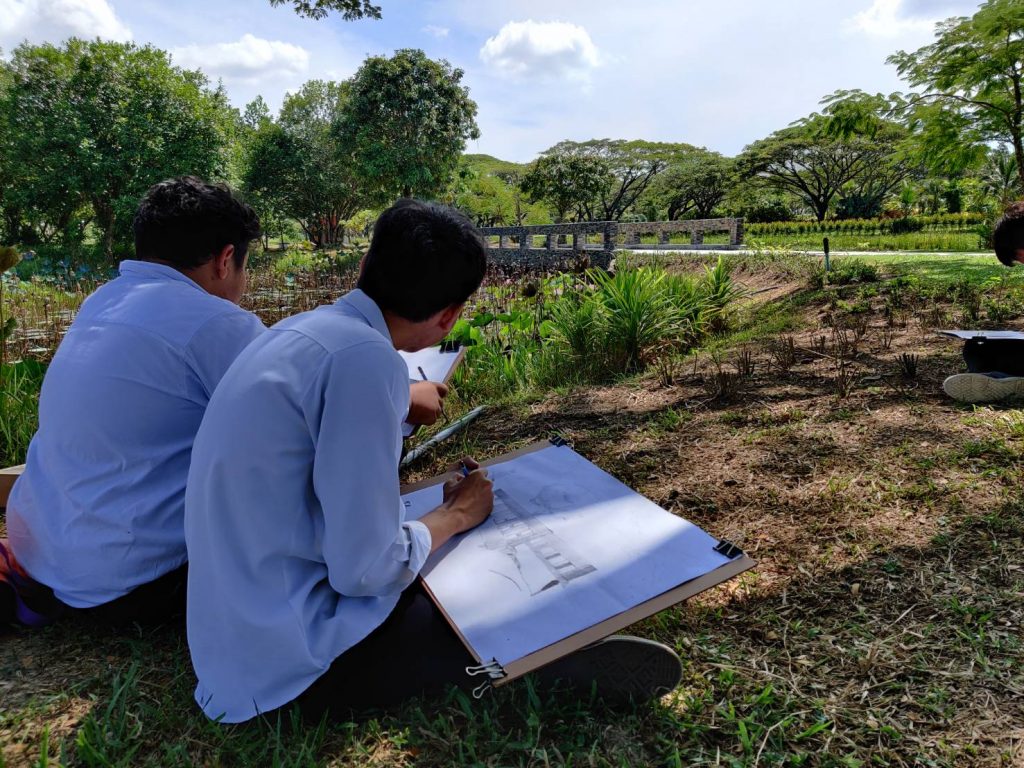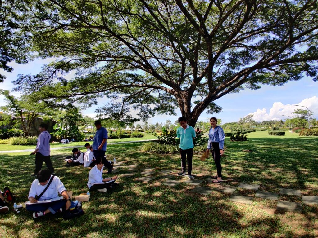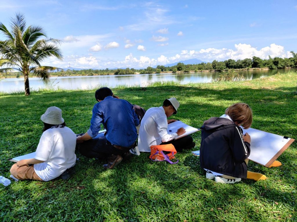 โดยให้นักศึกษาได้เลือกมุมที่ตัวเองชอบในการเขียนภาพและจะมีอาจารย์คอยให้คำแนะนำตลอดทั้งคาบเรียน เรามาดูภาพประกอบกันครับว่าการเรียนการสอนนอกสถานที่ของนักศึกษา หลักสูตรเทคโนโลยีมัลติมีเดียแอนิเมชันและเกม สำนักวิชาสารสนเทศศาสตร์ มหาวิทยาลัยวลัยลักษณ์ จะมีบรรยากาศแบบไหน?