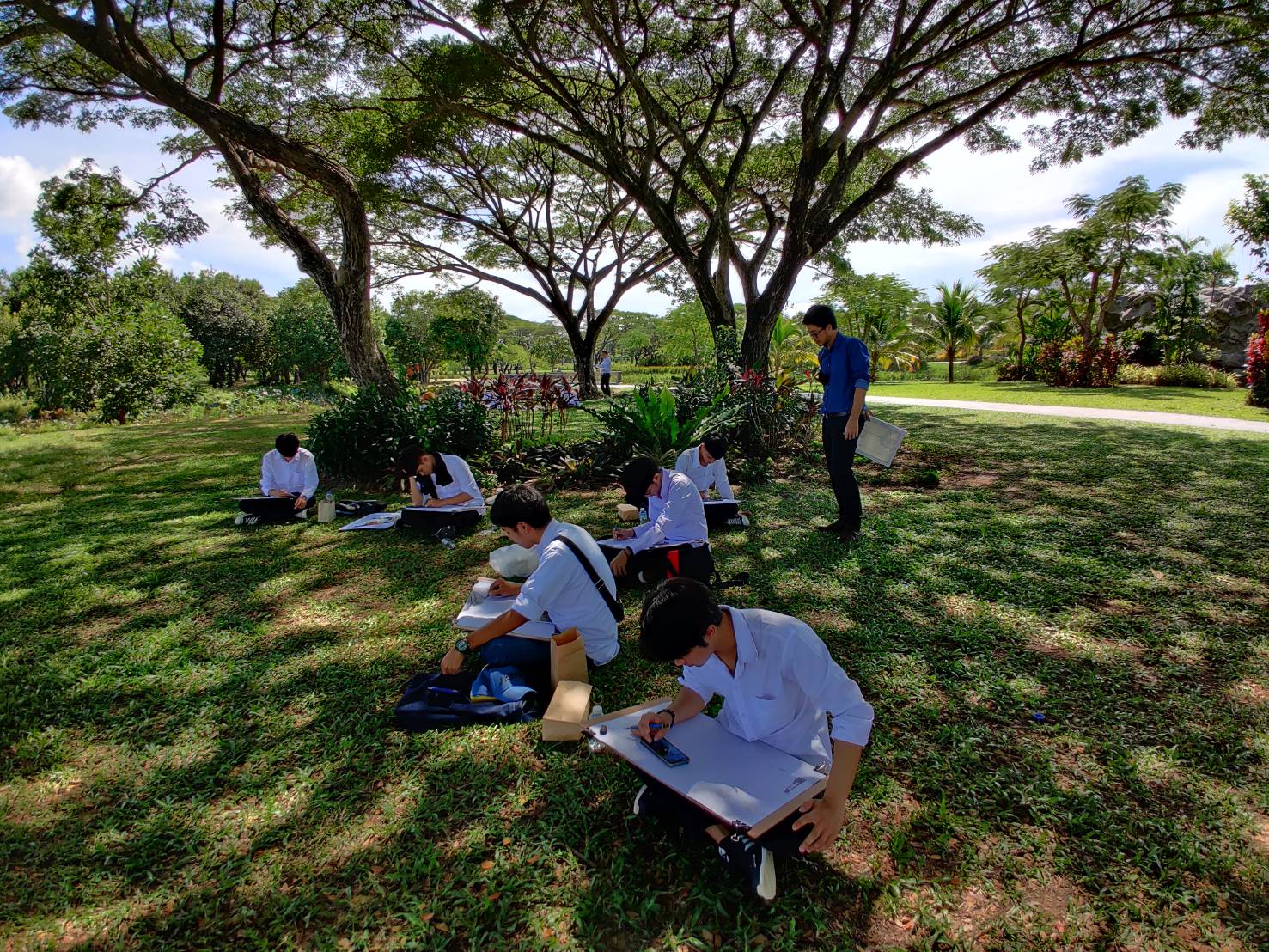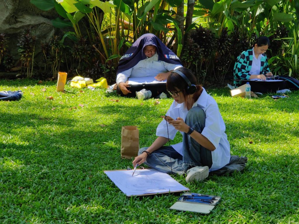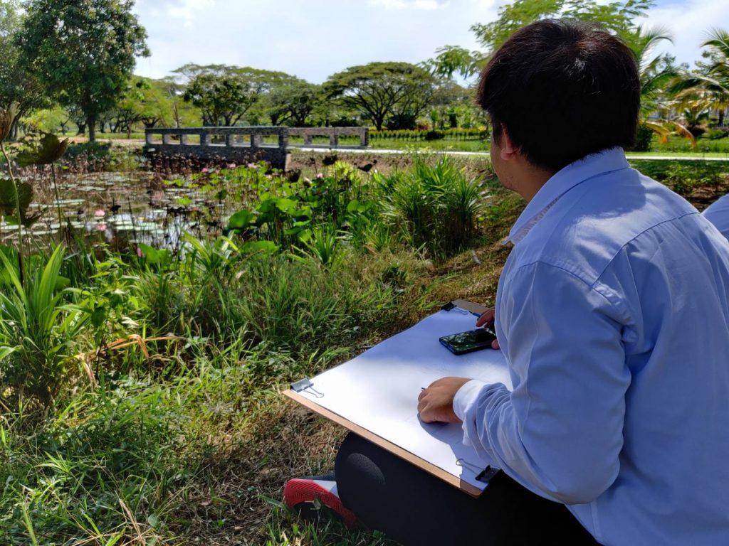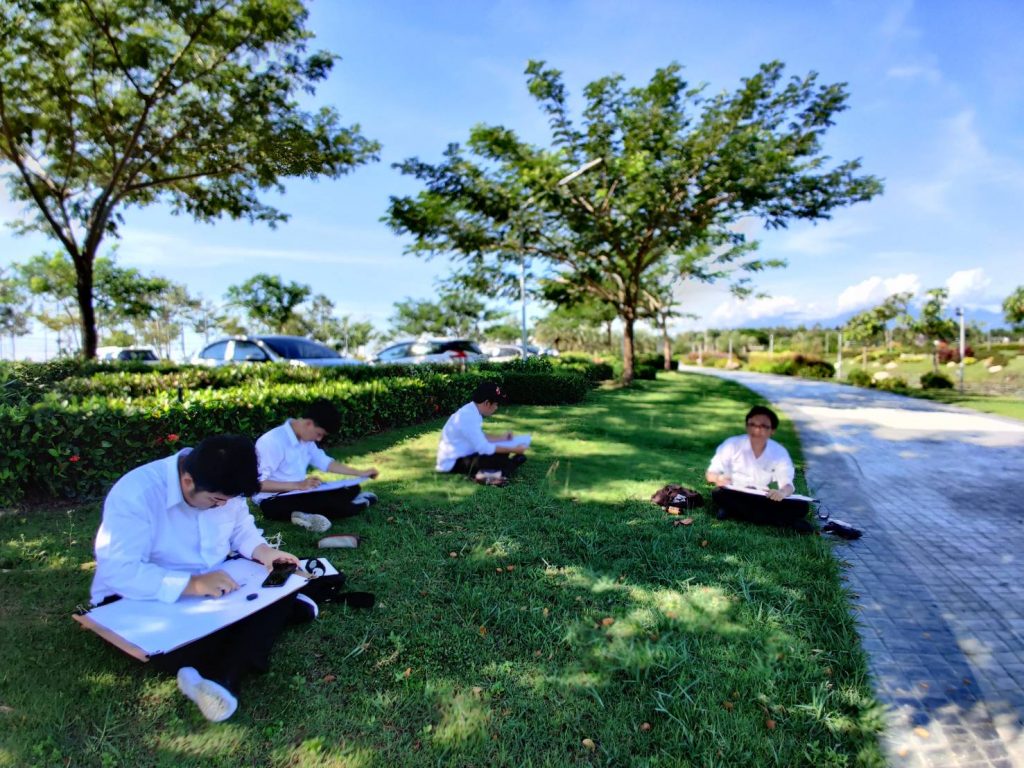 โดยให้นักศึกษาได้เลือกมุมที่ตัวเองชอบในการเขียนภาพและจะมีอาจารย์คอยให้คำแนะนำตลอดทั้งคาบเรียน เรามาดูภาพประกอบกันครับว่าการเรียนการสอนนอกสถานที่ของนักศึกษา หลักสูตรเทคโนโลยีมัลติมีเดียแอนิเมชันและเกม สำนักวิชาสารสนเทศศาสตร์ มหาวิทยาลัยวลัยลักษณ์ จะมีบรรยากาศแบบไหน?