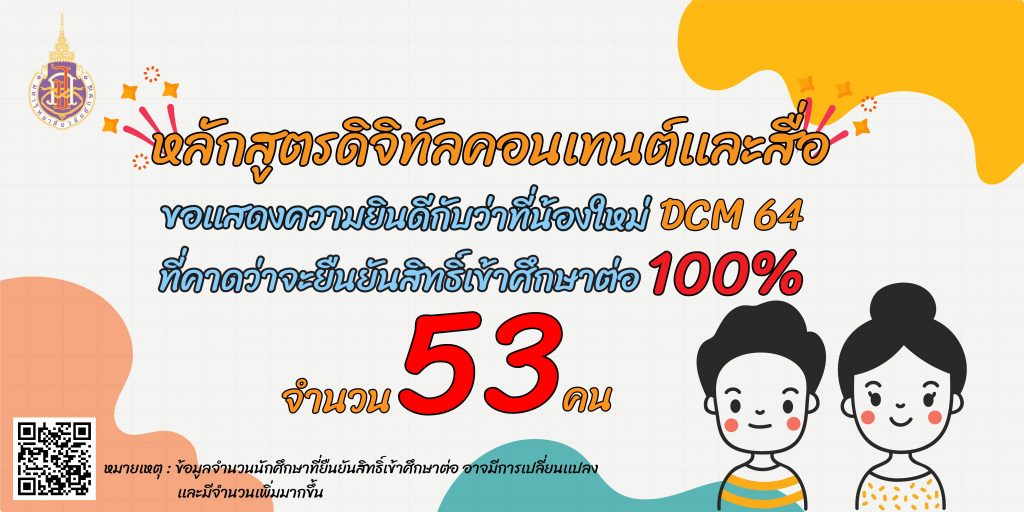 ทะลุเป้าแผนการรับ!!! เด็ก 64 แห่ยืนยันสิทธ์ หลักสูตรดิจิทัลคอนเทนต์และสื่อ