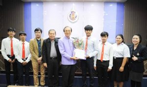 สุดเจ๋ง นักศึกษา DIM รับช่อดอกไม้แสดงความยินดีจากท่านอธิการมหาวิทยาลัย