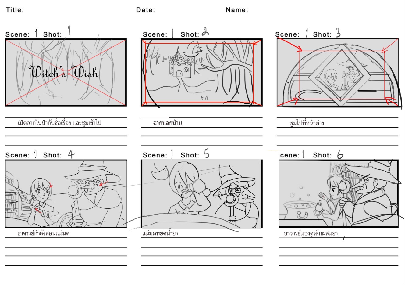โดยแอนิเมชั่น 3 มิติเรื่อง Witch’s Wish มีแนวคิดคือ แนวคิดเบื้องต้นมาจากการที่พยายามทำอะไรสักอย่างให้สำเร็จนั้น ต้องผ่านการฝึกฝนซ้ำแล้วซ้ำเล่า เพื่อที่จะได้บรรลุถึงเป้าหมายประสบความสำเร็จ ไม่ใช่เฉพาะขยันฝึกฝนอย่างเดียว ต้องมีการวิเคราะห์ ให้คิดทบทวนการทำงานของตัวเอง เพื่อนำไปพัฒนาตนเองให้ดีขึ้น รวมไปจนถึงพรสวรรค์ด้วย ตัวอย่างเช่นการร่ายเวทมนต์ครั้งแรกไม่ได้สำเร็จ มานั่งคิดวิเคราะห์ทบทวนว่าร่ายเวทมนต์ไม่ได้ แก้ไขแบบนี้อาจจะได้ ทำท่านี้อาจจะได้ แล้วนำมาพัฒนาดีขึ้นเรื่อยๆ จนสำเร็จตามที่ตั้งเป้าหมายไว้ ซึ่งโครงงานนี้สร้างให้เล่าเนื้อเรื่องขึ้นมาให้เข้าใจง่าย ให้แก่ผู้รับชม