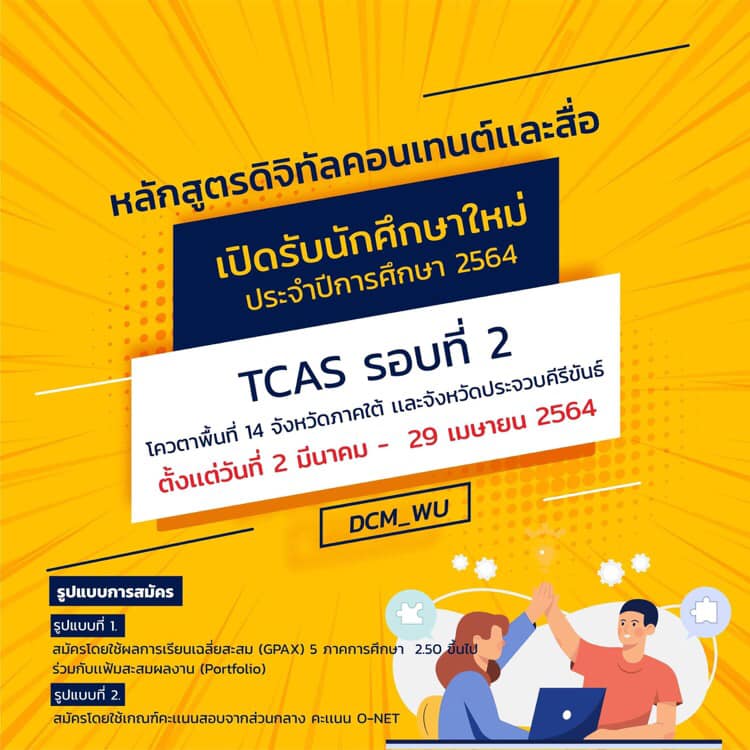 หลักสูตรดิจิทัลคอนเทนต์เเละสื่อ เปิดรับสมัครนักศึกษาใหม่ 2564 รอบที่ 2 โควตา 14 จังหวัดภาคใต้ เเละจังหวัดประจวบคีรีขันธ์