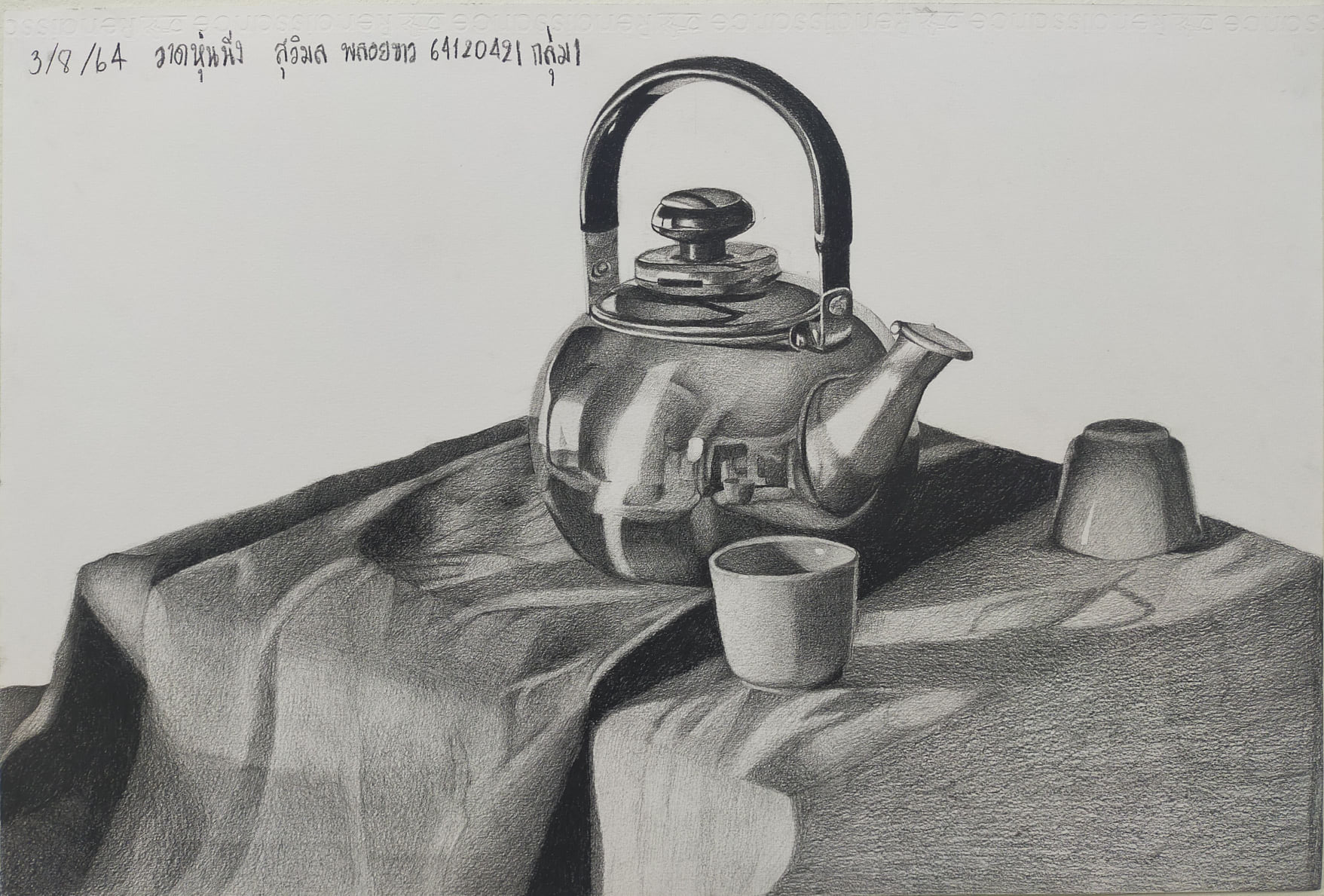ภาพผลงานบางส่วนและบรรยากาศการในเรียนออนไลน์จากวิชา drawing การวาดเส้นพื้นฐานในเทอม 1 ที่ผ่านมาของน้อง ๆ นักศึกษา MTA รุ่นที่ 14 ชั้นปีที่ 1 ปีการศึกษา 2564 น้องๆชั้นปีที่ 1 ได้ฝึกปฏิบัติการวาดภาพจากหุ่นนิ่งด้วยวิธีการวาดเส้นเบื้องต้นให้ถูกต้องตามหลักวิชา วาดเส้นและทัศนียวิทยา ศึกษาเรื่องโครงสร้าง น้ำหนัก แสงเงา พื้นผิวของวัตถุ รวมทั้งเรียนรู้ถึงความแตกต่างของเครื่องมือในการวาดเส้น