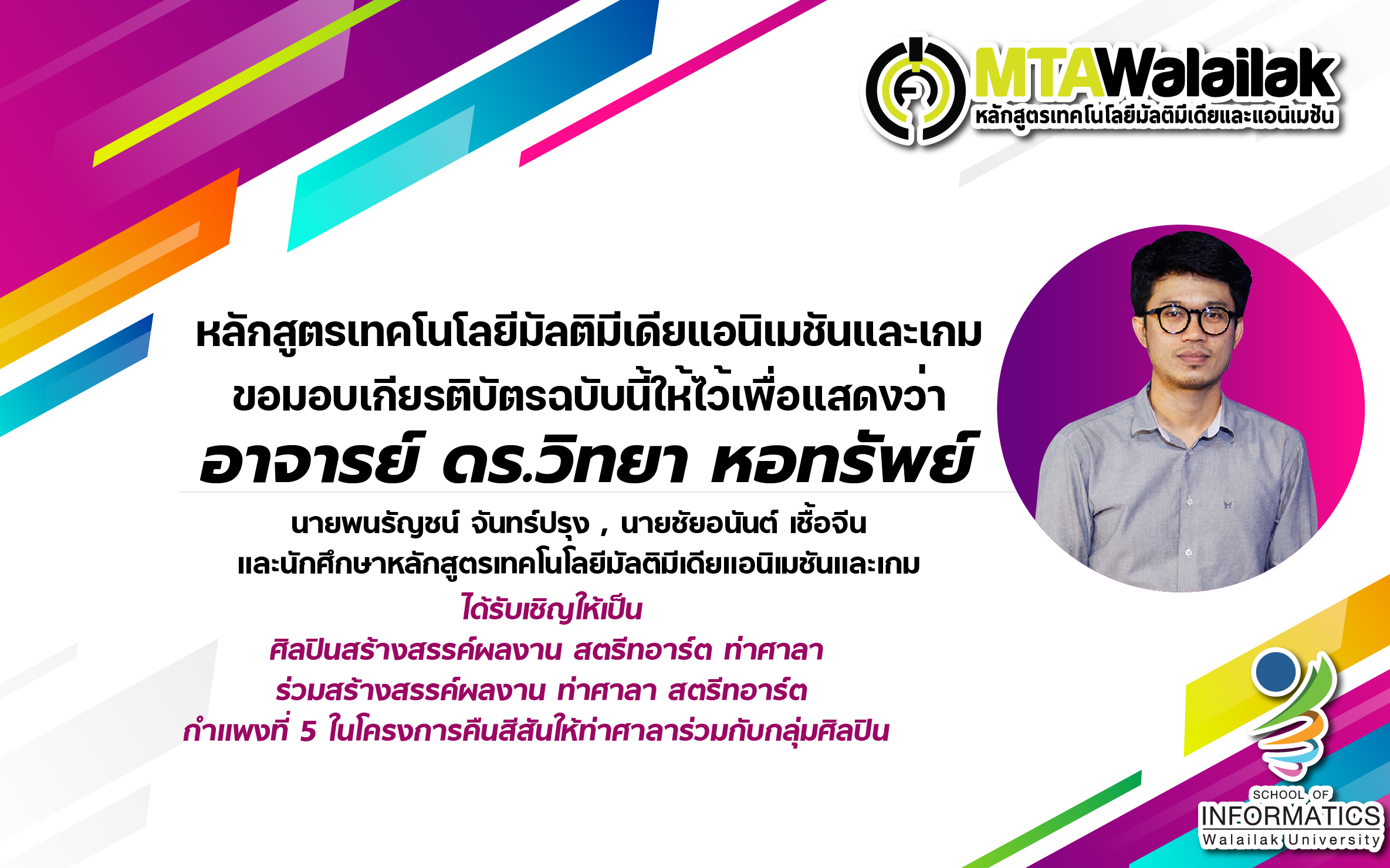 ขอแสดงความยินดีกับผลงานและความสำเร็จของคณาจารย์หลักสูตร MTA