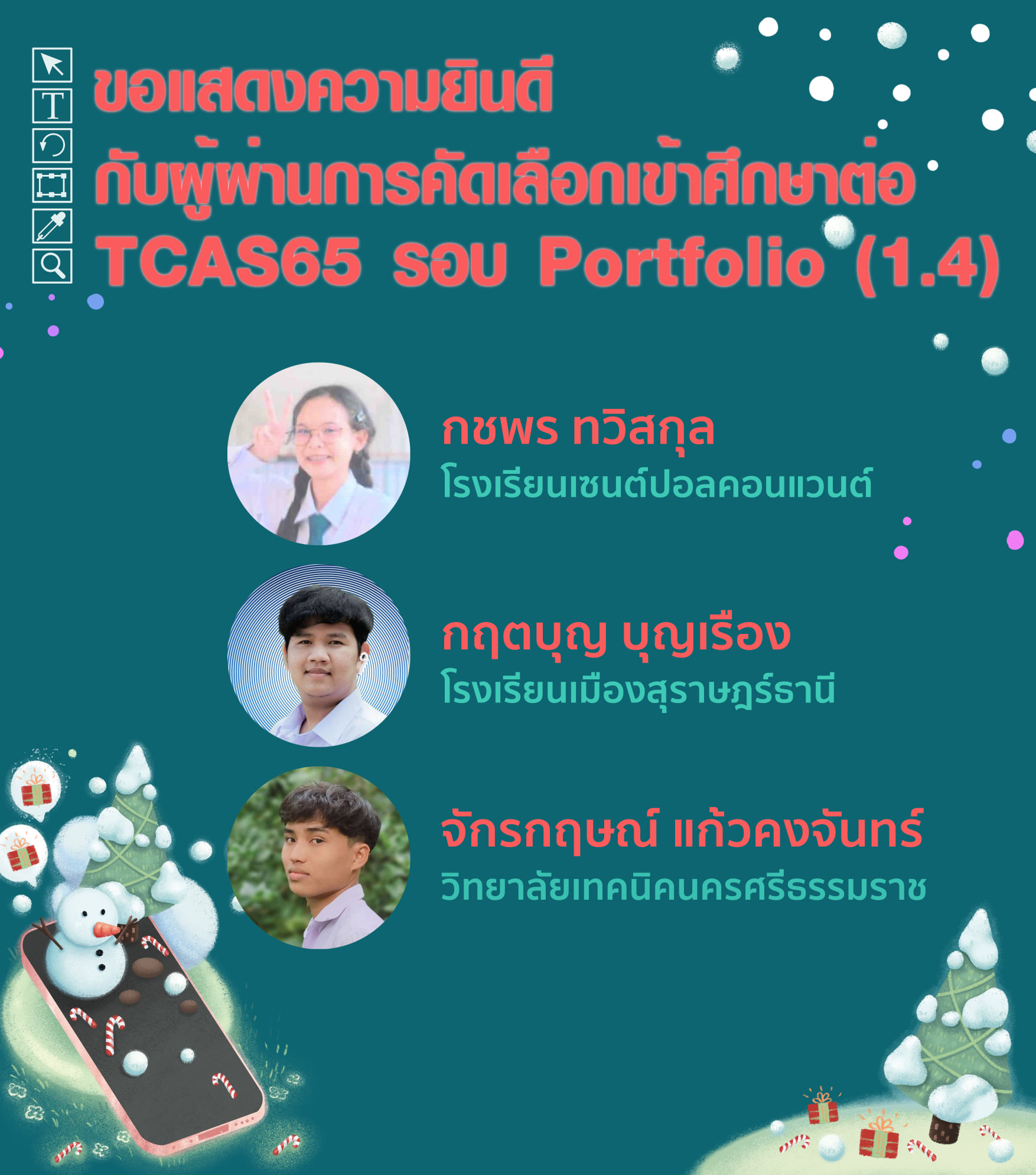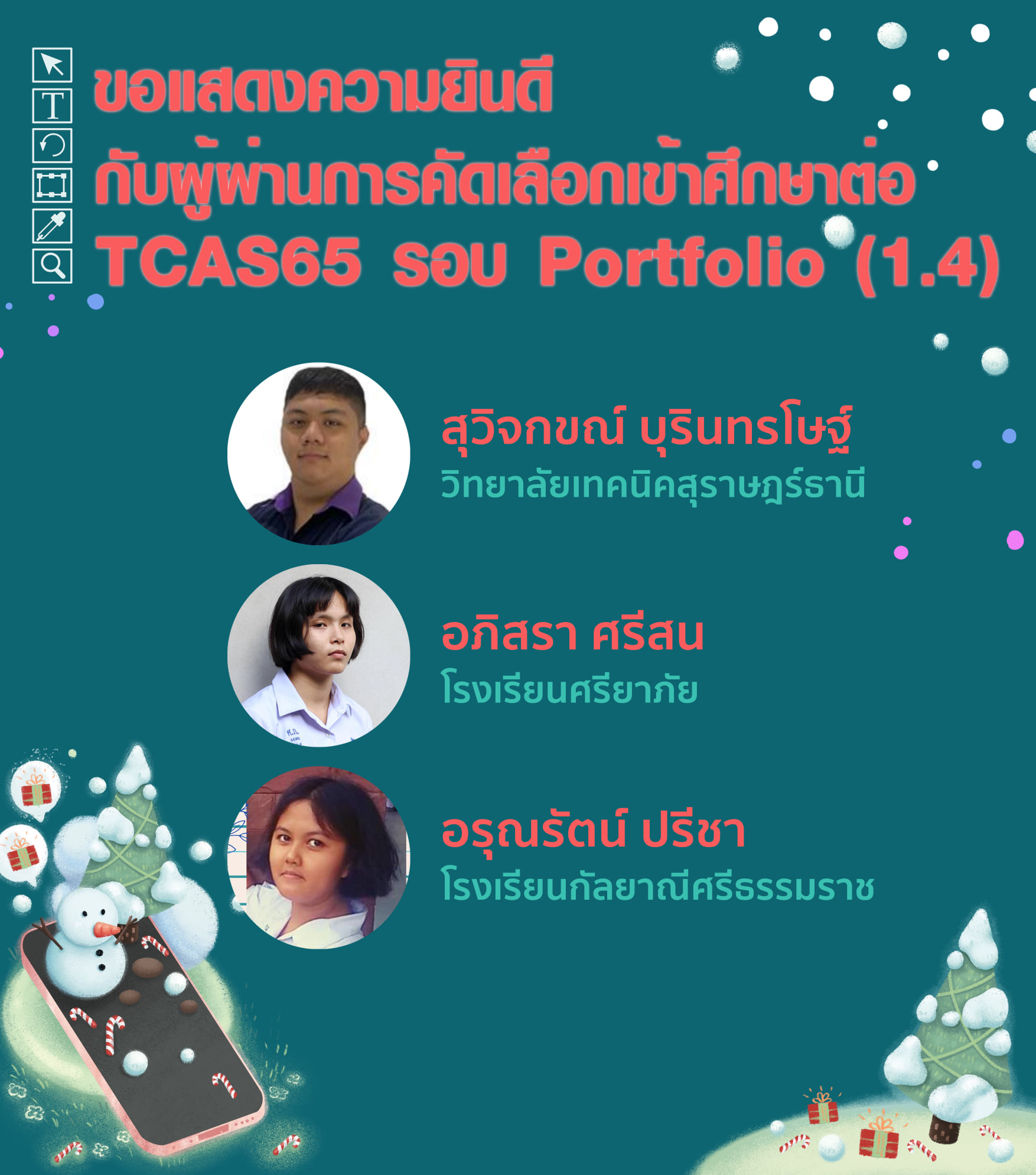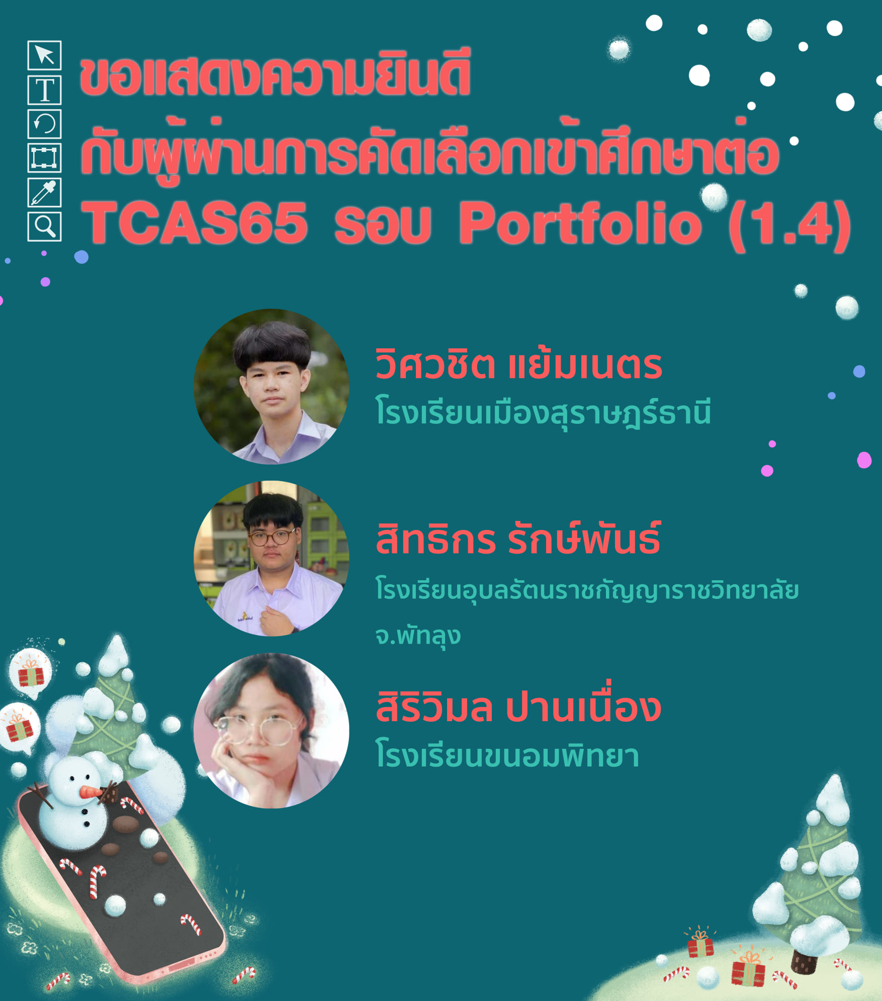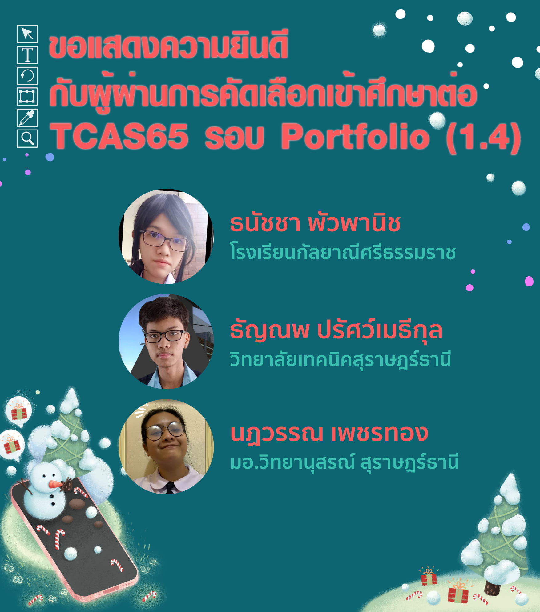 – ในรอบ TCAS65  รอบที่ 1 Porfolio ( รอบ 1.4 ของ ม.วลัยลักษณ์ )