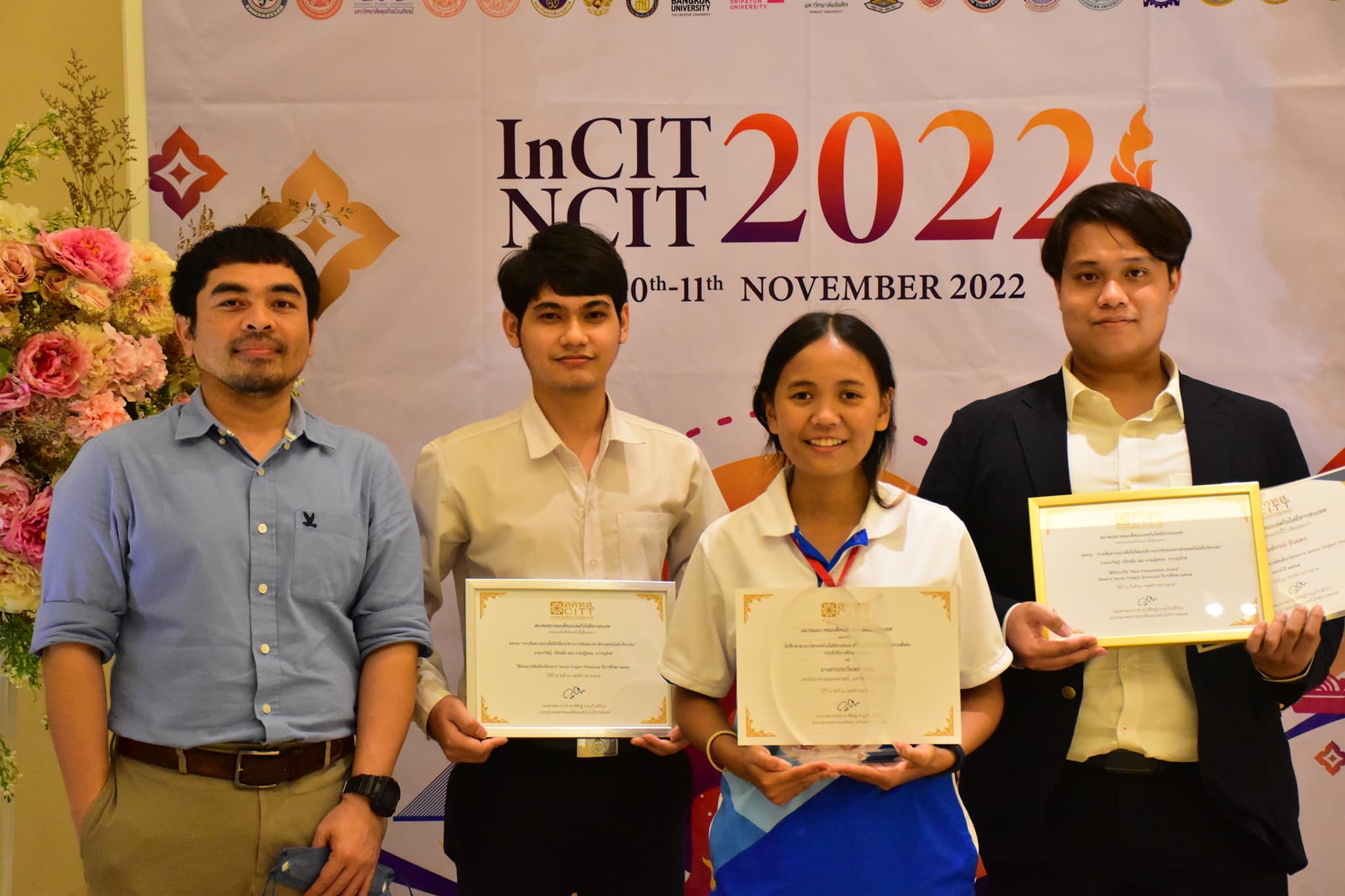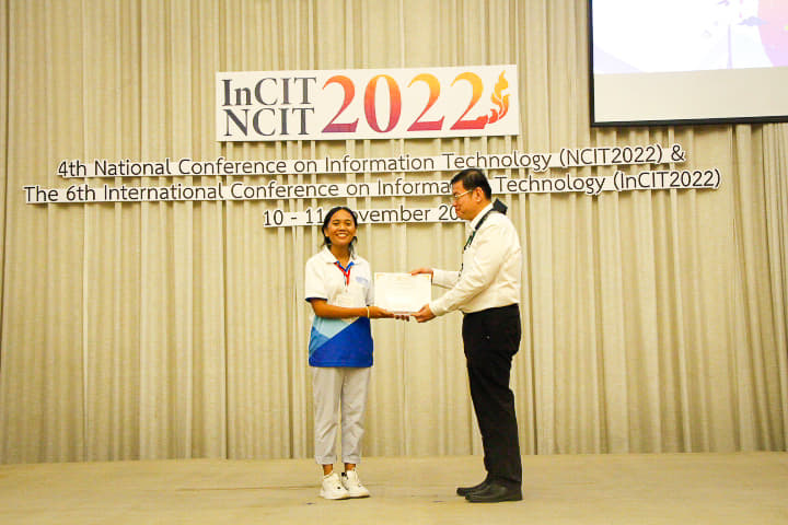 ตามที่สมาคมสภาคณบดีคณะเทคโนโลยีสารสนเทศ ได้จัดให้มีการมอบรางวัลและประกาศเกียรติคุณของนักศึกษาสาขาวิชาเทคโนโลยีสารสนเทศที่มีคุณธรรมจริยธรรมดีเด่นในงานประชุมวิชาการระดับประเทศ NCIT2022 โดย สมาคมสภาคณบดีคณะเทคโนโลยีสารสนเทศ จัดขึ้นในการประชุมวิชาการระดับประเทศด้านเทคโนโลยี ครั้งที่ 14 (NCIT2022) ณ ห้องประชุม Auditorium อาคาร CP ALL Academy ชั้น 16 ในวันที่ 10-11 พฤศจิกายน 2565