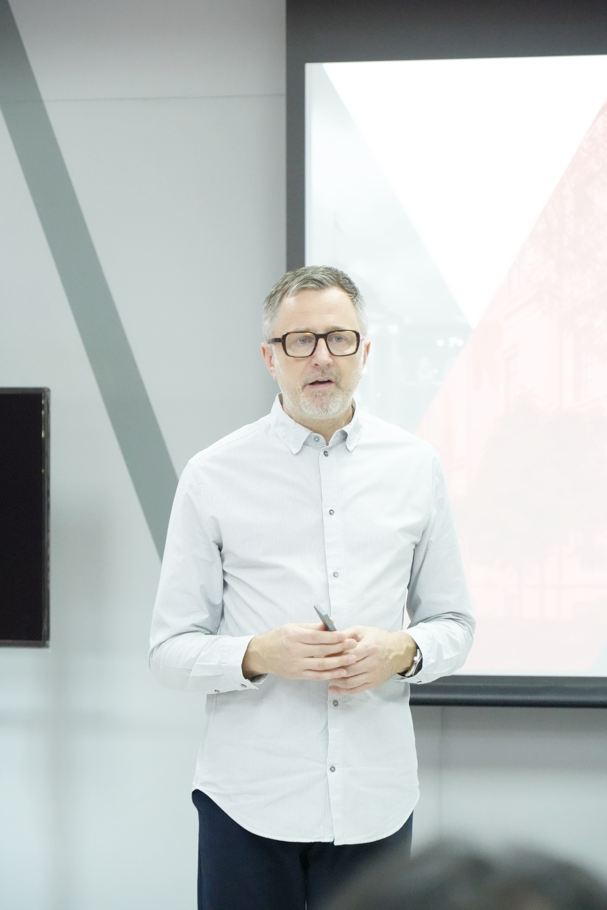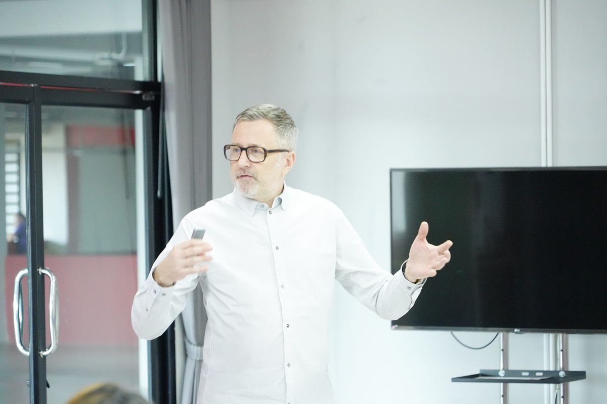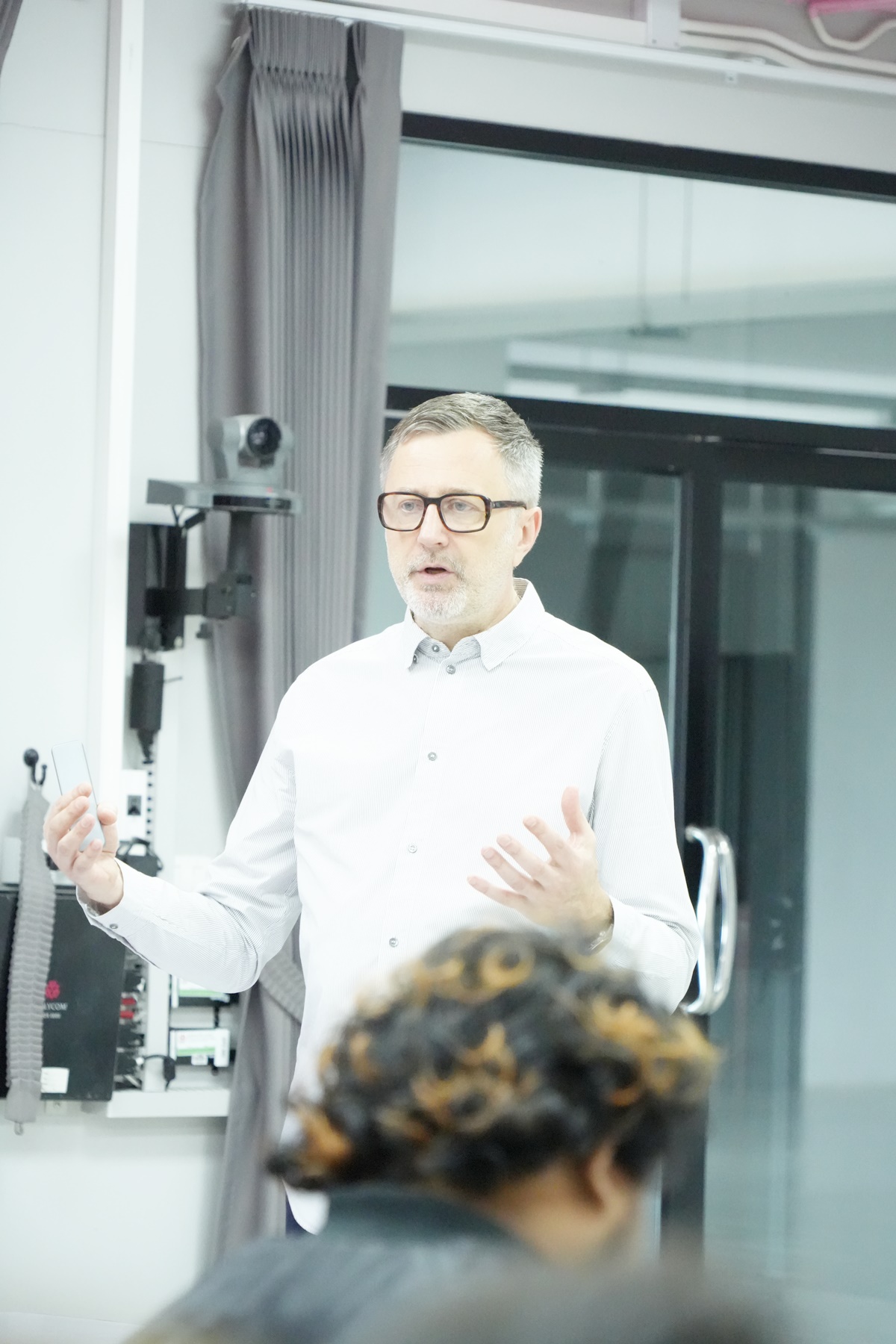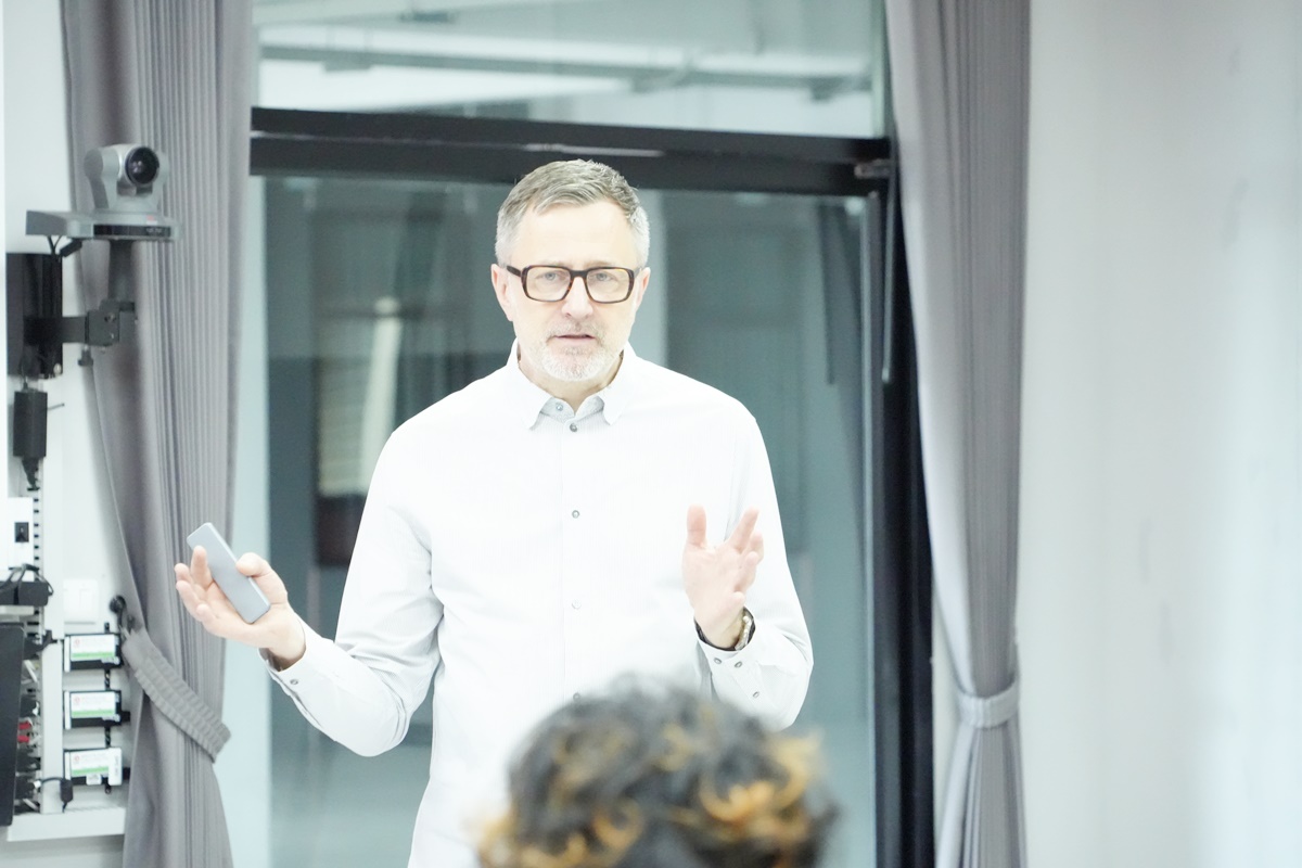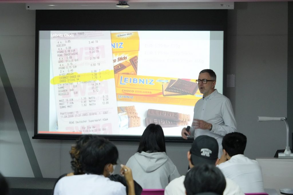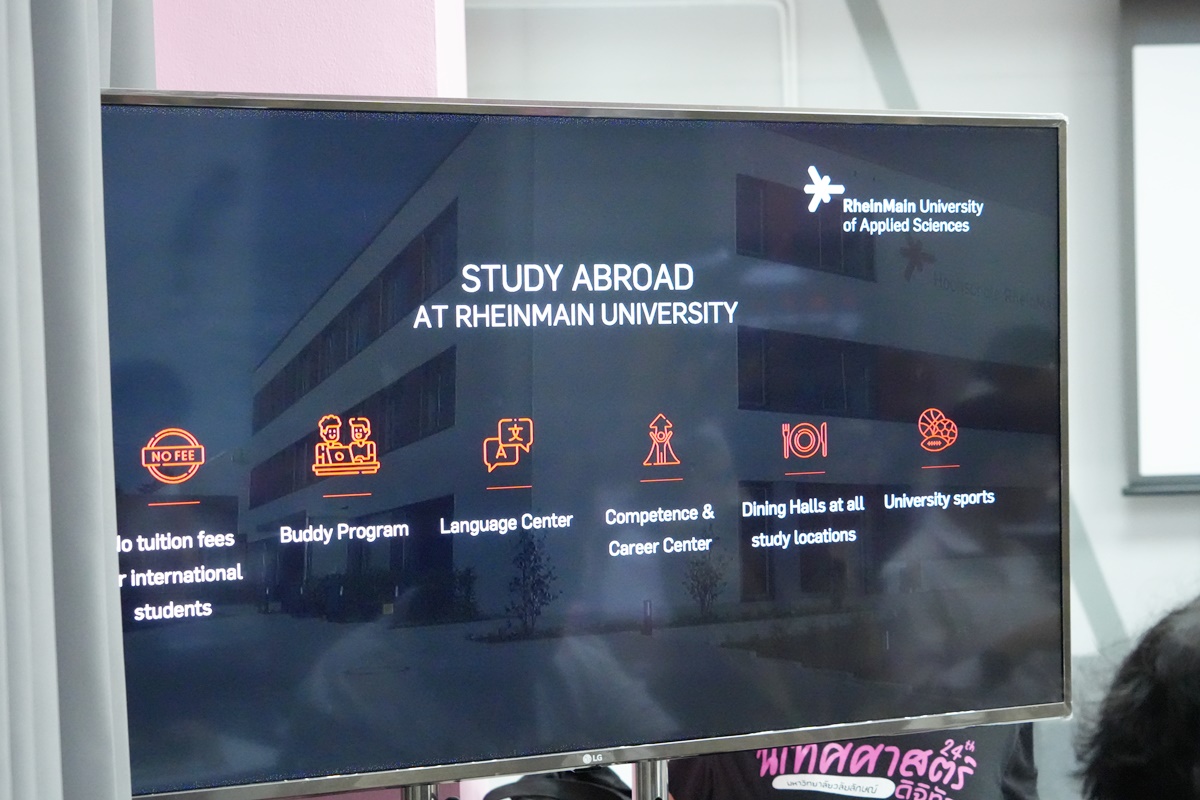โดยในช่วงเช้า Prof. Stephan Schwarz ได้บรรยายให้ความรู้กับนักศึกษาชั้นปี 3 หลักสูตรนิเทศศาสตร์ดิจิทัลในหัวข้อ “Media Conception and Production” รวมทั้งให้ข้อมูลสำหรับการศึกษาต่อและแนวทางในการแลกเปลี่ยนนักศึกษาหรือการศึกษาหลักสูตรระยะสั้น (International short course) ที่ประเทศเยอรมัน