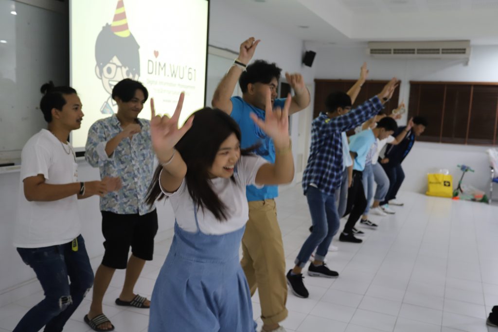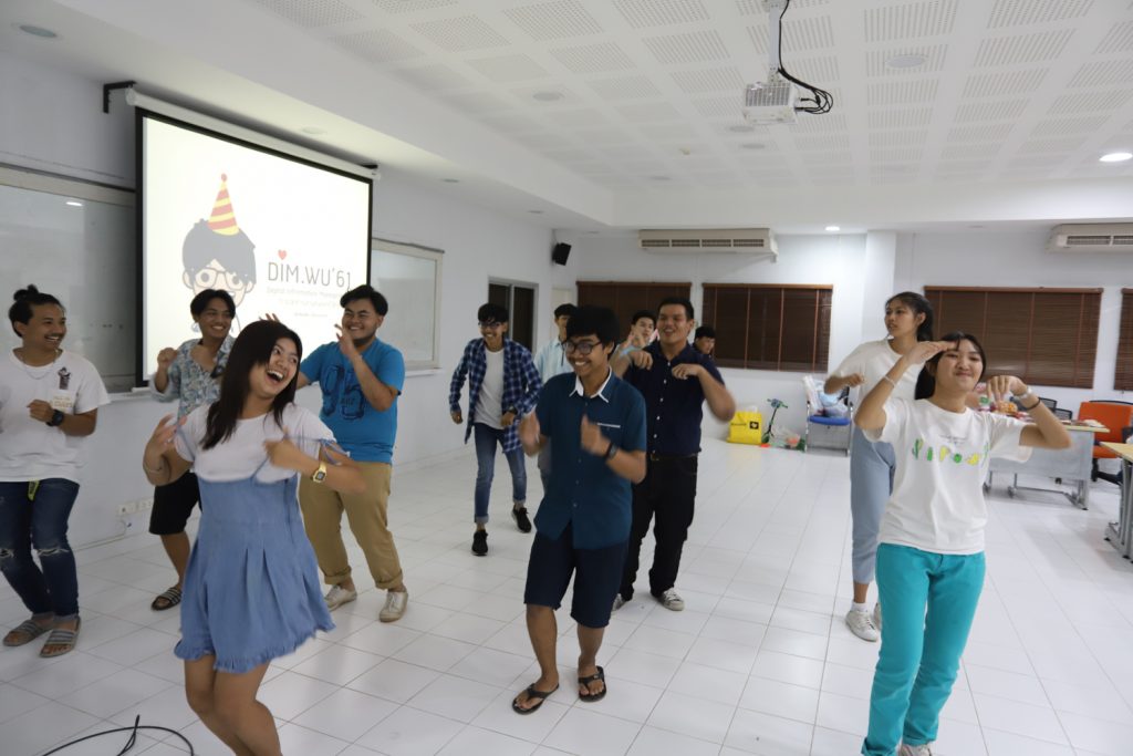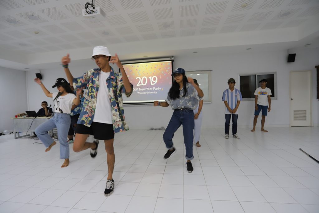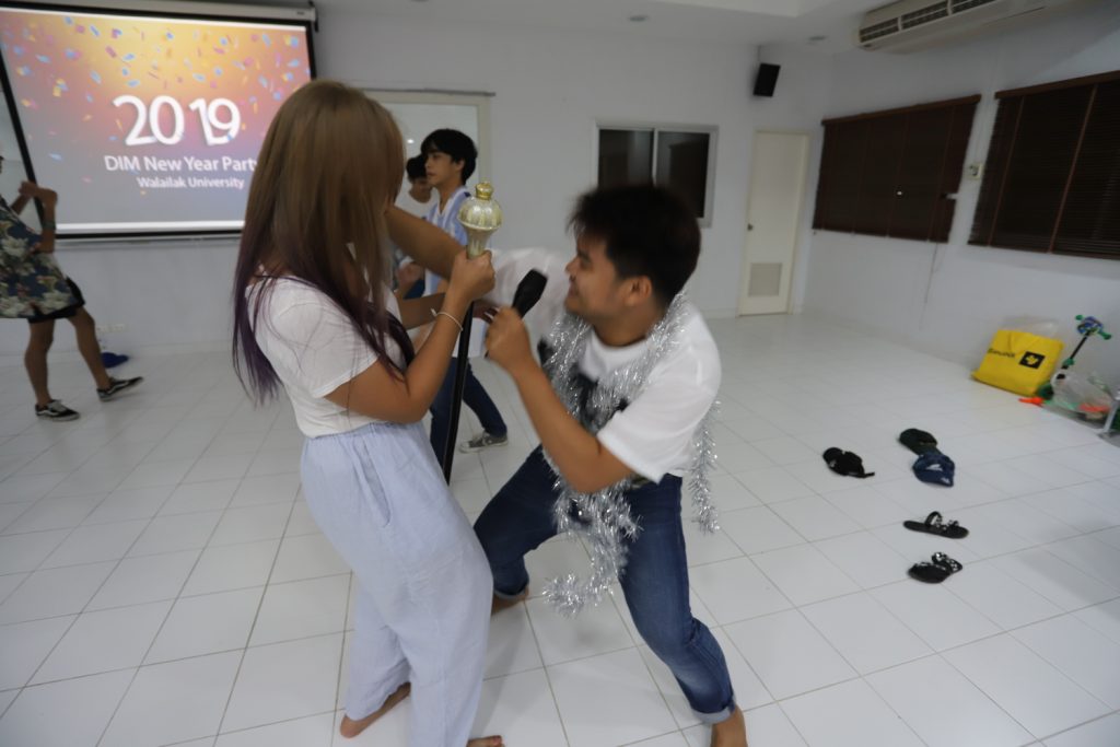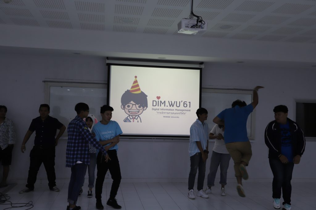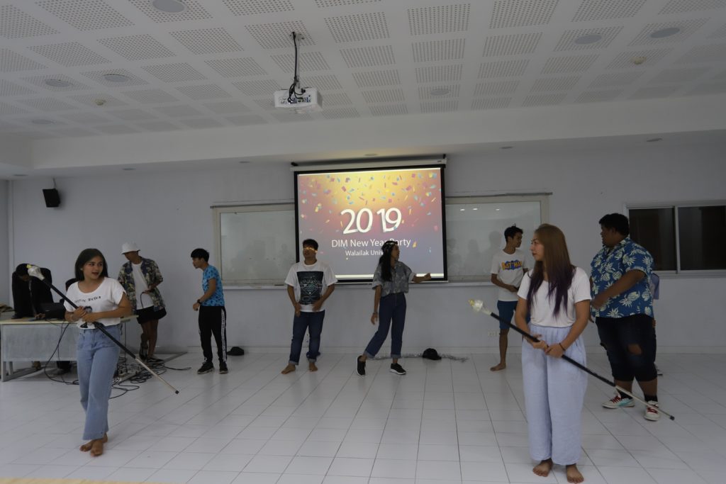คณาจารย์ DIM จัดกิจกรรมแลกของขวัญปีใหม่ร่วมกับนักศึกษา พร้อมกับจัดงานปาร์ตี้สบายๆ บรรยากาศสนุกสนานและอบอุ่นกันในแบบพี่น้องและครอบครัว งานนี้มีการแสดงของนักศึกษาทุกชั้นปี และการแสดงชุดพิเศษจากคณาจารย์ที่ได้รับเสียงกรี๊ดดังที่สุดและสร้างความประทับให้กับนักศึกษาในหลักสูตรเป็นอย่างมาก และที่ขาดไม่ได้เลยสำหรับปาร์ตี้ชาว DIM ของเราคือ ท่านอาจารย์ ผศ.ดร.ศิวนาถ นันทพิชัย หรือ อ.ตุ๋ย ของพวกเรา ได้โชว์ฝีมือเชฟมือทองกับเมนู ขนมจีนน้ำเงี้ยวและแกงเขียวหวานไก่ให้พวกเราได้อร่อยกันในทุกๆ งาน จนเป็นที่พูดกันติดปากว่า “เรียน DIM ต้องได้กินขนมจีนน้ำเงี้ยวและแกงเขียวหวานไก่ อ.ตุ๋ย ถึงจะเรียกว่าเป็นนศ. DIM อย่างเต็มตัว” ฮ่าๆ นอกจากนี้ อ.ยุทธนา หรือ อ.ต๊ะ กับพี่ผึ้ง ก็สนับสนุนโดยการทำลูกชิ้นหม่าลามาอีก 1 ถาด รสชาติแซ่บถึงใจจริงๆ เลยครับ ว่าแล้วแอดมินก็อยากกินอีก เมื่อคืนแย่งปี 1 ไม่ทัน 55555+
