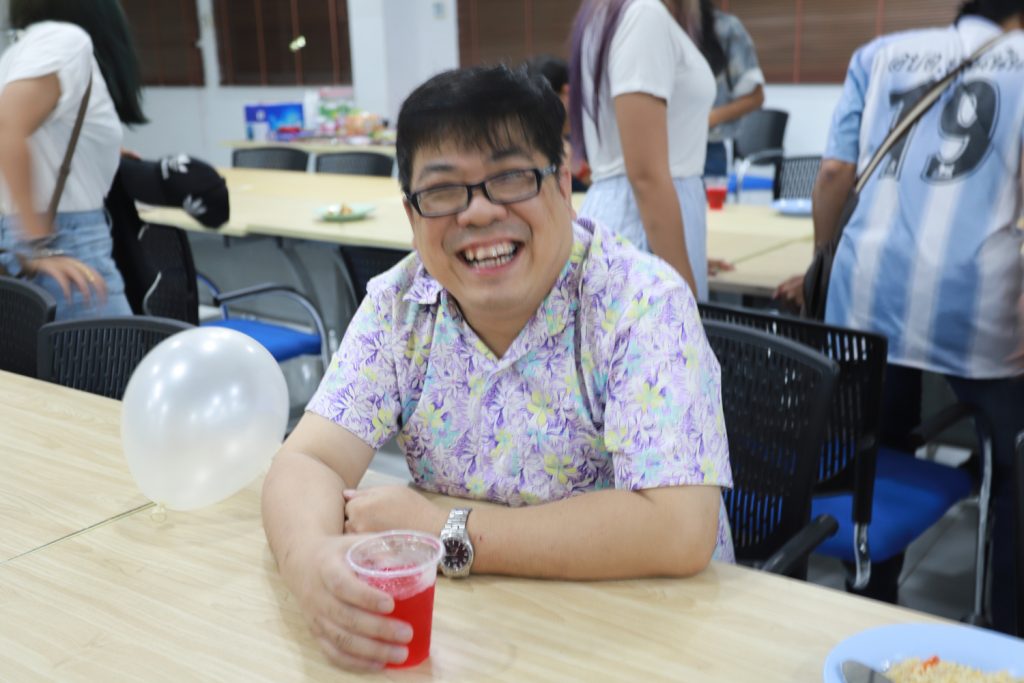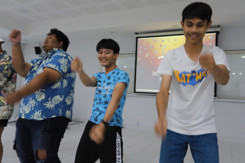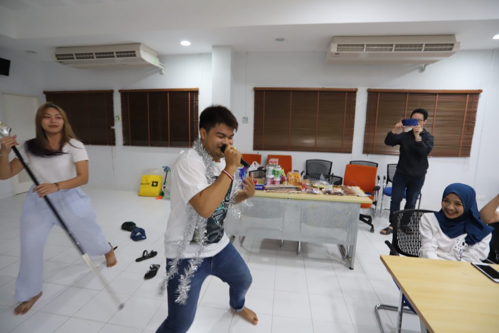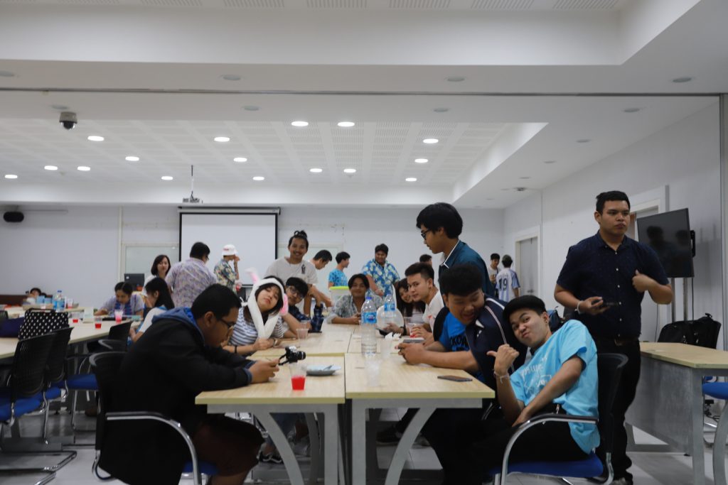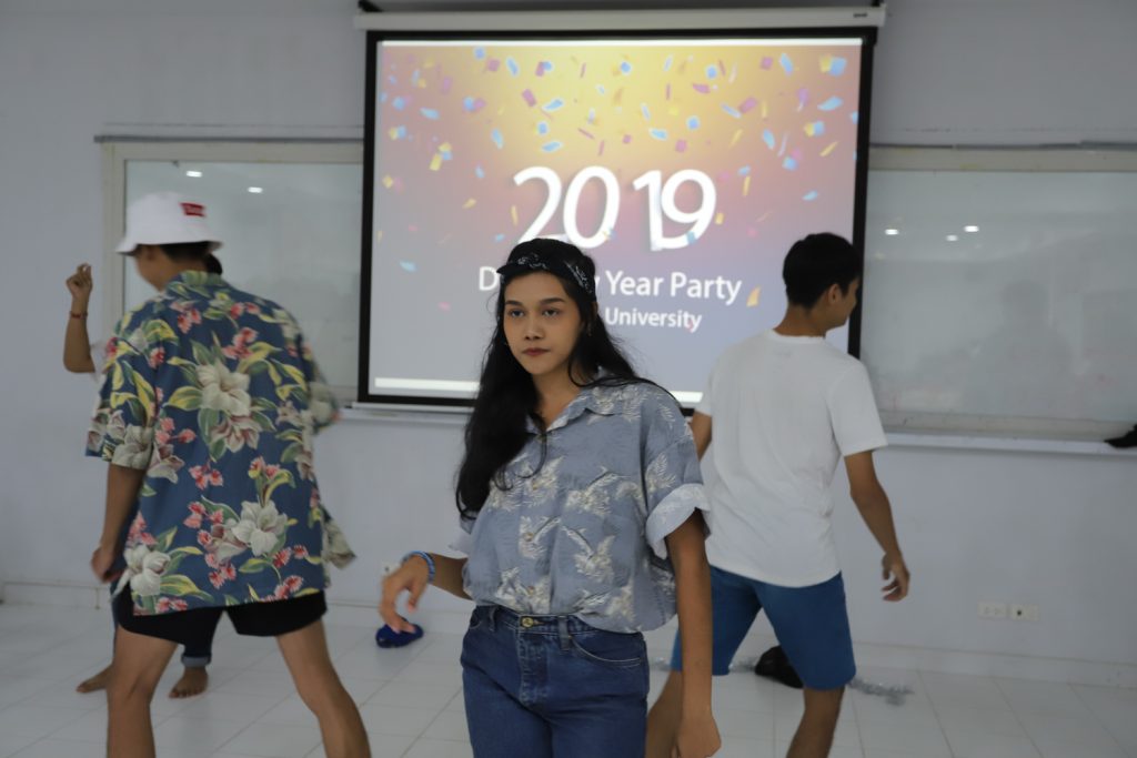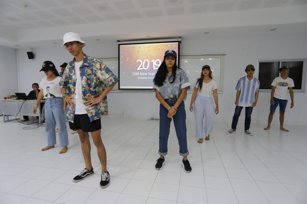 คณาจารย์ DIM จัดกิจกรรมแลกของขวัญปีใหม่ร่วมกับนักศึกษา พร้อมกับจัดงานปาร์ตี้สบายๆ บรรยากาศสนุกสนานและอบอุ่นกันในแบบพี่น้องและครอบครัว งานนี้มีการแสดงของนักศึกษาทุกชั้นปี และการแสดงชุดพิเศษจากคณาจารย์ที่ได้รับเสียงกรี๊ดดังที่สุดและสร้างความประทับให้กับนักศึกษาในหลักสูตรเป็นอย่างมาก และที่ขาดไม่ได้เลยสำหรับปาร์ตี้ชาว DIM ของเราคือ ท่านอาจารย์ ผศ.ดร.ศิวนาถ นันทพิชัย หรือ อ.ตุ๋ย ของพวกเรา ได้โชว์ฝีมือเชฟมือทองกับเมนู ขนมจีนน้ำเงี้ยวและแกงเขียวหวานไก่ให้พวกเราได้อร่อยกันในทุกๆ งาน จนเป็นที่พูดกันติดปากว่า “เรียน DIM ต้องได้กินขนมจีนน้ำเงี้ยวและแกงเขียวหวานไก่ อ.ตุ๋ย ถึงจะเรียกว่าเป็นนศ. DIM อย่างเต็มตัว” ฮ่าๆ นอกจากนี้ อ.ยุทธนา หรือ อ.ต๊ะ กับพี่ผึ้ง ก็สนับสนุนโดยการทำลูกชิ้นหม่าลามาอีก 1 ถาด รสชาติแซ่บถึงใจจริงๆ เลยครับ ว่าแล้วแอดมินก็อยากกินอีก เมื่อคืนแย่งปี 1 ไม่ทัน 55555+
