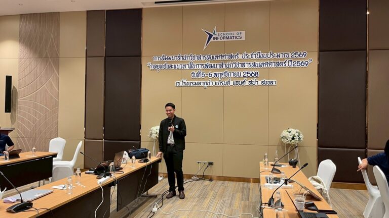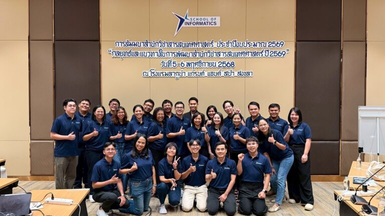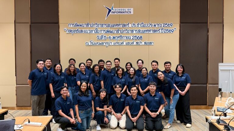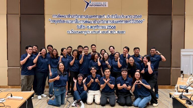 The School of Informatics, Walailak University, organized a seminar on “Strategies and Guidelines for the Development of the School of Informatics, 2026” from November 5–7, 2025, at Laguna Grand Hotel & Spa, Songkhla Province. The Dean, Associate Deans, faculty members, and staff of the School all participated in the activity.
