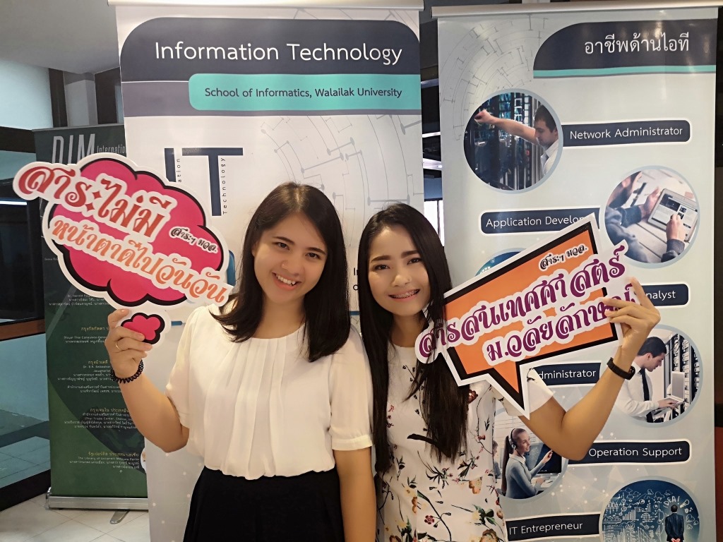 เมื่อวันที่ 2 พฤศจิกายน ที่ผ่านมา สาขาวิชาเทคโนโลยีสารสนเทศร่วมกับสำนักวิชาสารสนเทศศาสตร์ ได้จัดกิจกรรมพบปะ ครูแนะแนวจากทั่วประเทศจำนวน 150 คน โดยสาขาวิชาเทคโนโลยีสารสนเทศมีการให้ข้อมูลหลักสูตรใหม่ 2 หลักสูตรที่จะเปิดในปี 2562 คือหลักสูตรเทคโนโลยีสารสนเทศและนวัตกรรมดิจิทัล และหลักสูตรนวัตกรรมสารสนเทศทางการแพทย์ นอกจากนี้มีการแสดงผลงานนักศึกษาหลากหลายงานผลงาน ทำให้ครูแนะแนวที่เข้าร่วมในงานนี้สามารถเห็นภาพและได้รับข้อมูลมากขึ้น เพื่อเป็นประโยชน์กับนักเรียนที่เข้าสนใจศึกษาต่อในสาขาวิชาเทคโนโลยีสารสนเทศต่อไป ทางสาขาวิชาเทคโนโลยีสารสนเทศต้องของขอบคุณทุกท่านที่ได้ให้ความสนใจและตอบรับเป็นอย่างดี