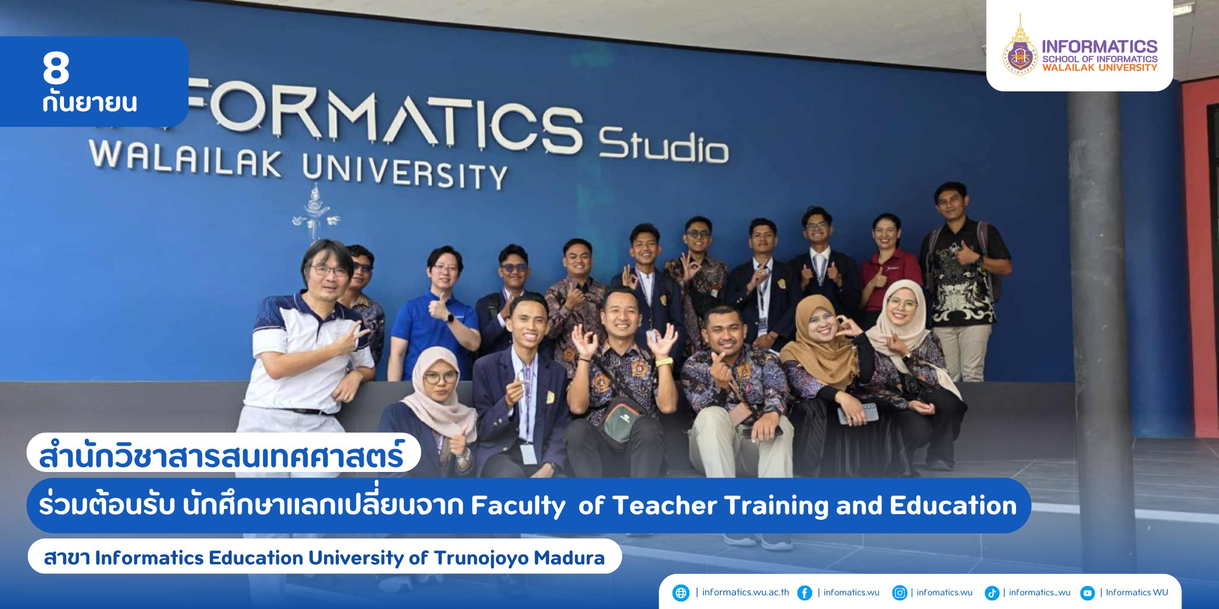 เมื่อวันที่ 8 กันยายน 2568 สำนักวิชาสารสนเทศศาสตร์ มหาวิทยาลัยวลัยลักษณ์ ได้ให้การต้อนรับอย่างอบอุ่นแก่คณะอาจารย์และนักศึกษาแลกเปลี่ยนจาก Faculty of Teacher Training and Education, University of Trunojoyo Madura ประเทศอินโดนีเซีย ณ อาคาร Informatics studio สำนักวิชาสารสนเทศศาสตร์ มหาวิทยาลัยวลัยลักษณ์ การมาเยือนครั้งนี้นับเป็นอีกก้าวสำคัญในการสานสัมพันธ์และความร่วมมือทางวิชาการระหว่างสถาบัน เพื่อเปิดประตูสู่การแลกเปลี่ยนความรู้และวัฒนธรรมในระดับสากล 🤝✨