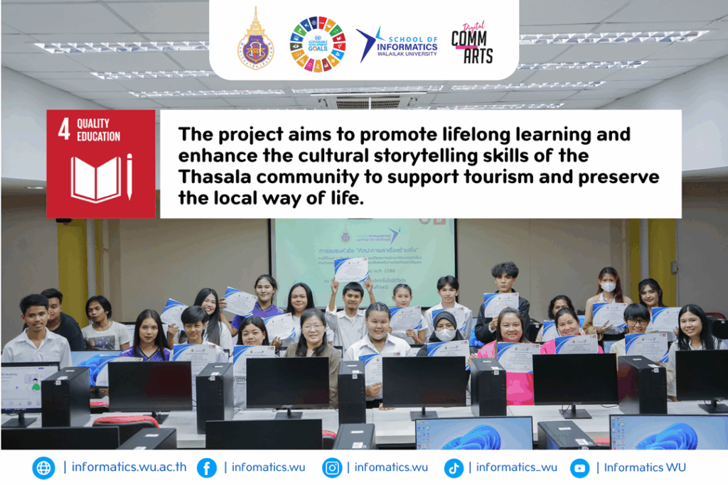 The Digital Content and Media Program, School of Informatics, Walailak University, led by Asst. Prof. Dr. Naparat Chookerd, in collaboration with the Academic Services Center, has initiated a project titled “Design and Development of Media to Promote Learning on Sustainable Development Goals (SDGs).” The main objective is to create digital media that communicates SDG-related content in an accessible and engaging way, enhancing public knowledge, understanding, and participation in driving sustainable development at both local and global levels 🌏