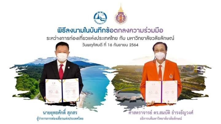 เมื่อวันที่ 16 กันยายน 2564 ที่ผ่านมา ศาสตราจารย์ ดร.สมบัติ ธำรงธัญวงศ์ อธิการบดีมหาวิทยาลัยวลัยลักษณ์ (มวล.) และ นายยุทธศักดิ์ สุภสร ผู้ว่าการการท่องเที่ยวแห่งประเทศไทย (ททท.) ร่วมกัน ลงนามในบันทึกข้อตกลงความร่วมมือระหว่าง ททท.กับ มวล. โดยการพัฒนา Application มานะ มานคร