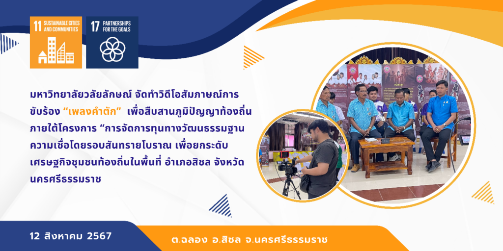 วันที่ 17 สิงหาคม พ.ศ. 2567 มหาวิทยาลัยวลัยลักษณ์ นำโดย อาจารย์ ดร.นภารัตน์ ชูเกิด และนักศึกษาจากสำนักวิชาสารสนเทศศาสตร์ ร่วมกับศูนย์บริการวิชาการลงพื้นที่วัดวังตะวันตกเพื่อถ่ายทำวิดีโอสัมภาษณ์ พระครูพรหมเขตคณารักษ์, ดร. เจ้าอาวาสวัดวังตะวันตกเกี่ยวกับโครงการของวัด (ครูสมาธิ) มีหัวข้อในการสัมภาษณ์คือ