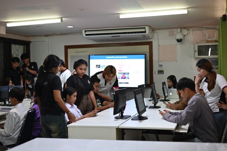 The Digital Communication Arts Program, led by Asst. Prof. Tanaporn Charoenthansakul, Project Leader, together with students from the Moving Images Club, Walailak University, conducted a field activity at the Tha Sala District Learning Promotion Center, Nakhon Si Thammarat Province, on Monday, July 7, 2025. The purpose was to disseminate and introduce access to online learning resources on storytelling skill development prepared by the project, with an emphasis on accessibility via mobile phones. This enabled participants to learn and review training content and storytelling skills in local culture anytime, as well as share the knowledge within their community.